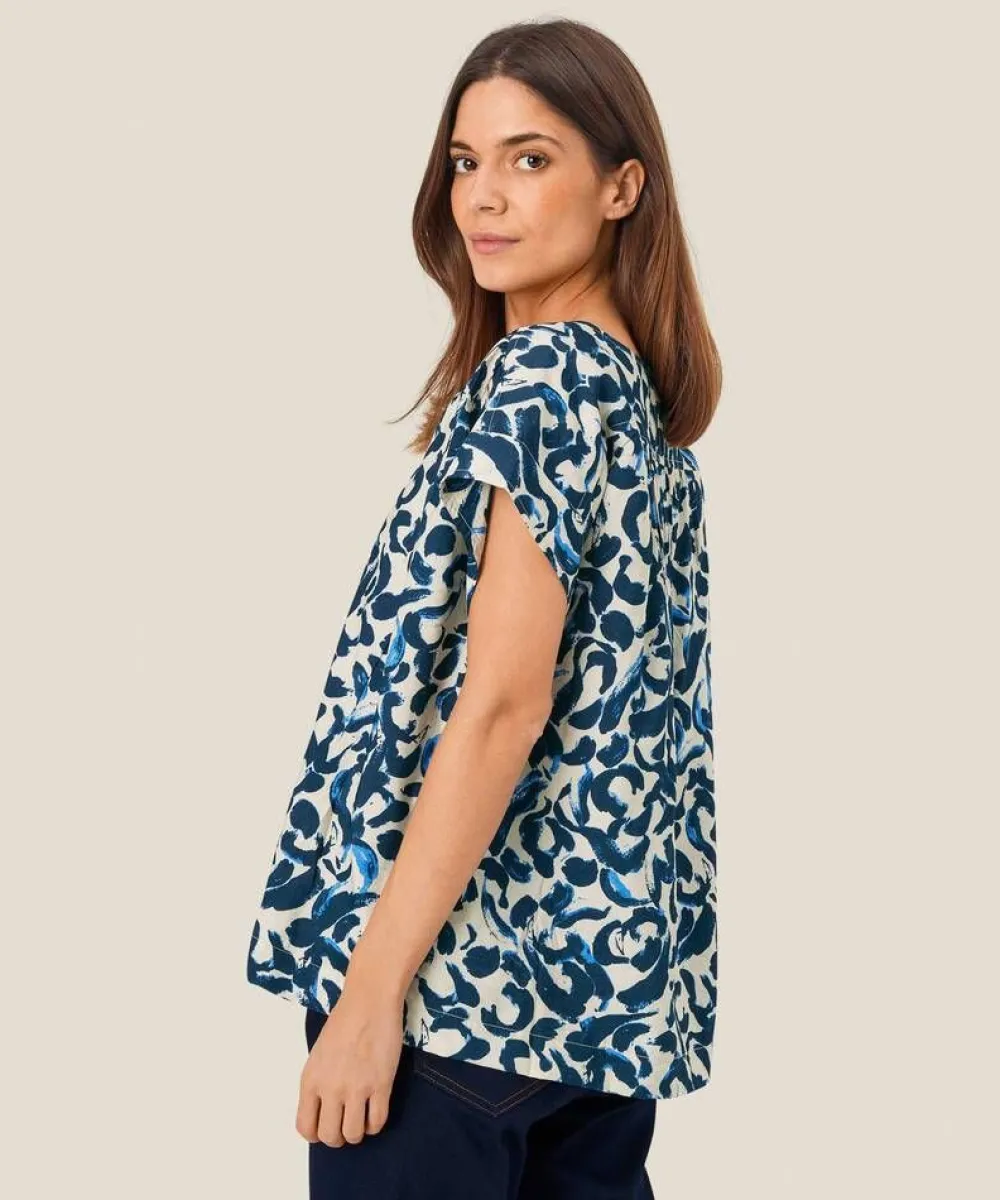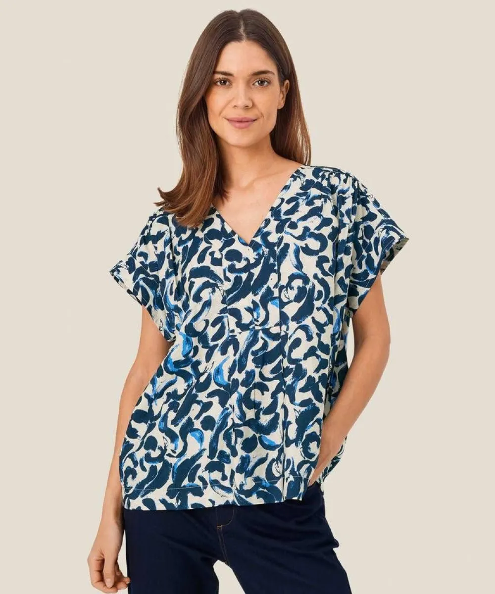 Pehmeästä viskoosista valmistettu paita eläväisellä merestä inspiroitunuteella printillä. Naiselliset yksityiskoh…