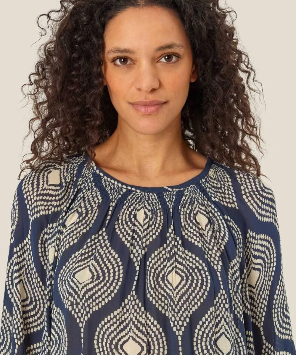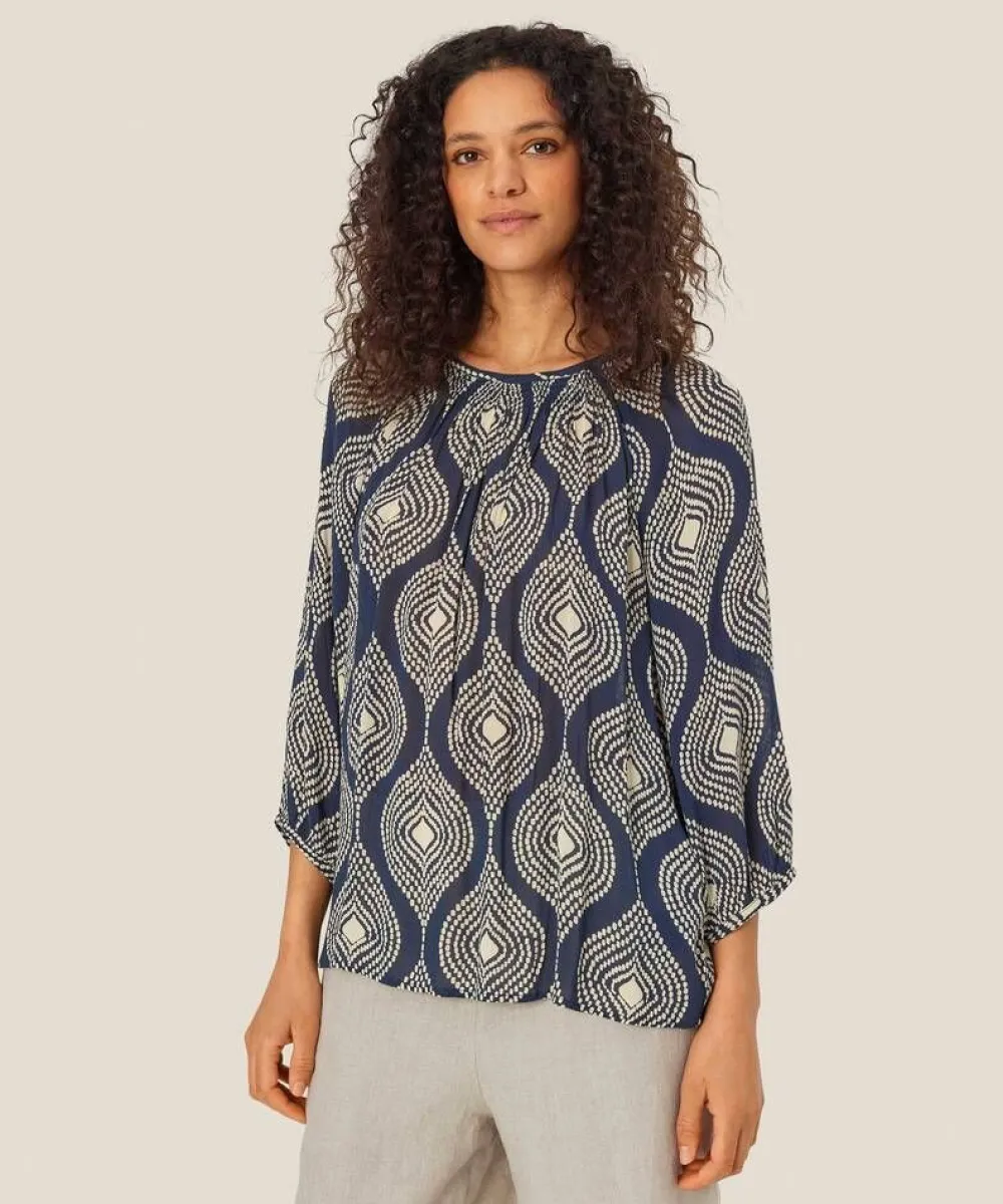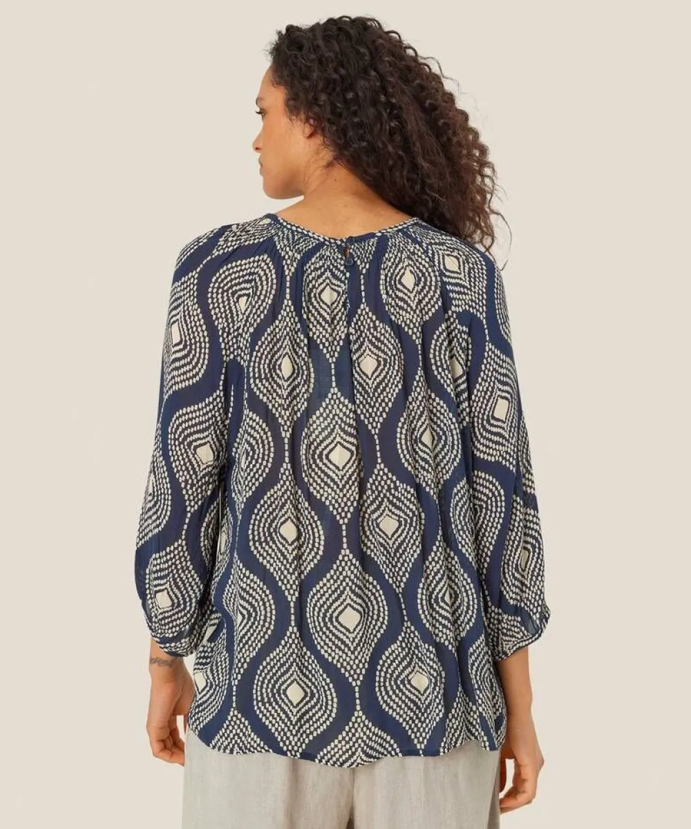 Ihana kesäinen pusero väljällä istuvuudella ja suoralinjaisella leikkauksella. 3/4 hihat hienoisella pussimaisuudell…