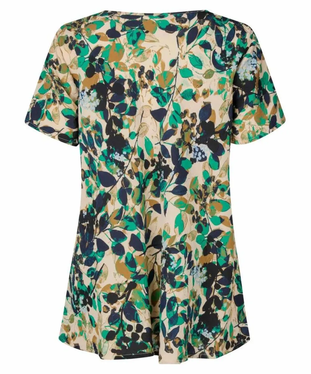 Lyhythihainen pusero lehtikuosilla ja levenevällä helmalla.Lisää tietojaHoito-ohje:Vesipesu 30Istuvuus:Regular fitMa…