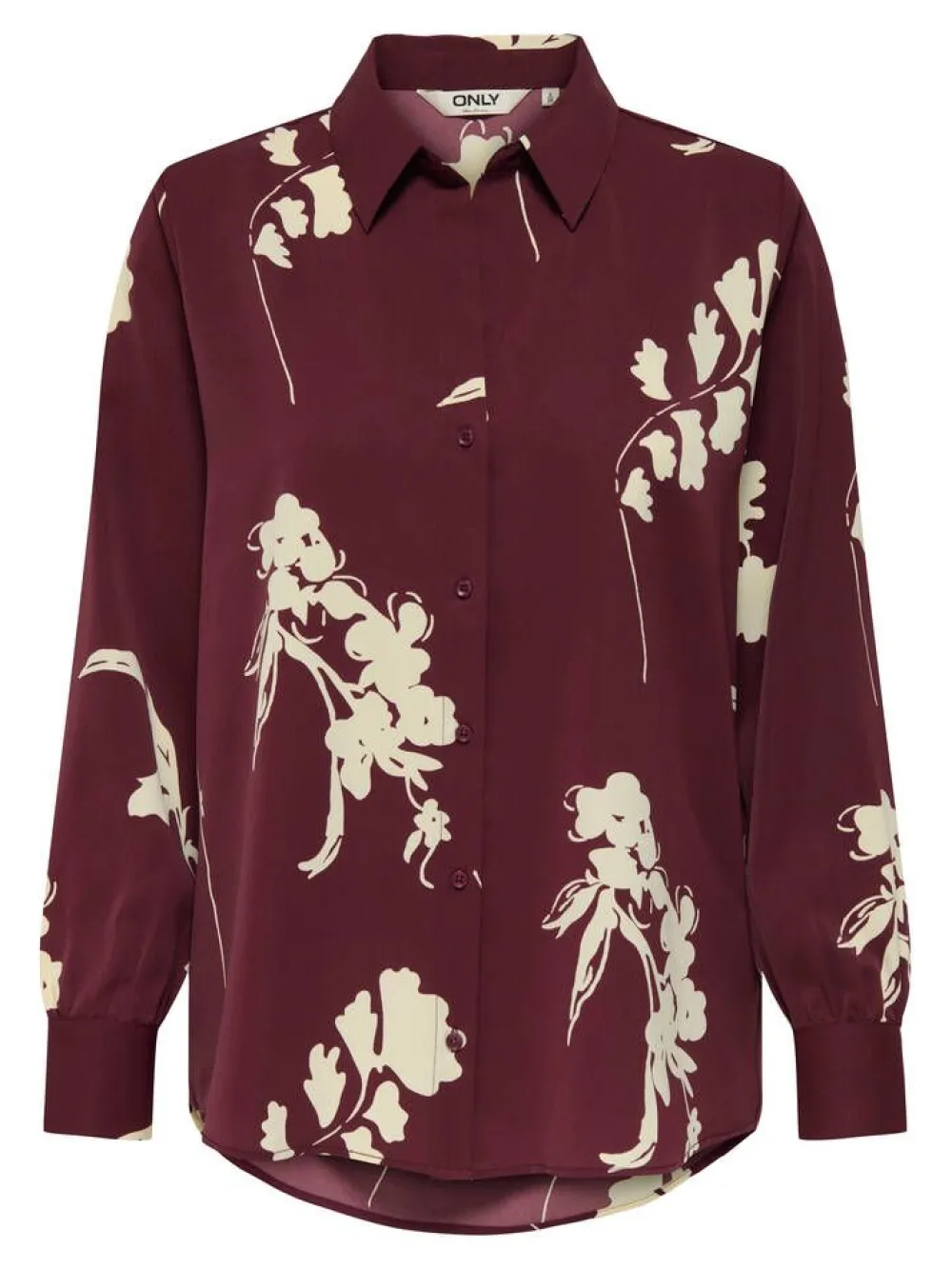 Elegantti ja kevyesti laskeutuva satiinipintainen pusero näyttävällä valkoisella kuvioinnilla. Kaulukset ja etupuole…