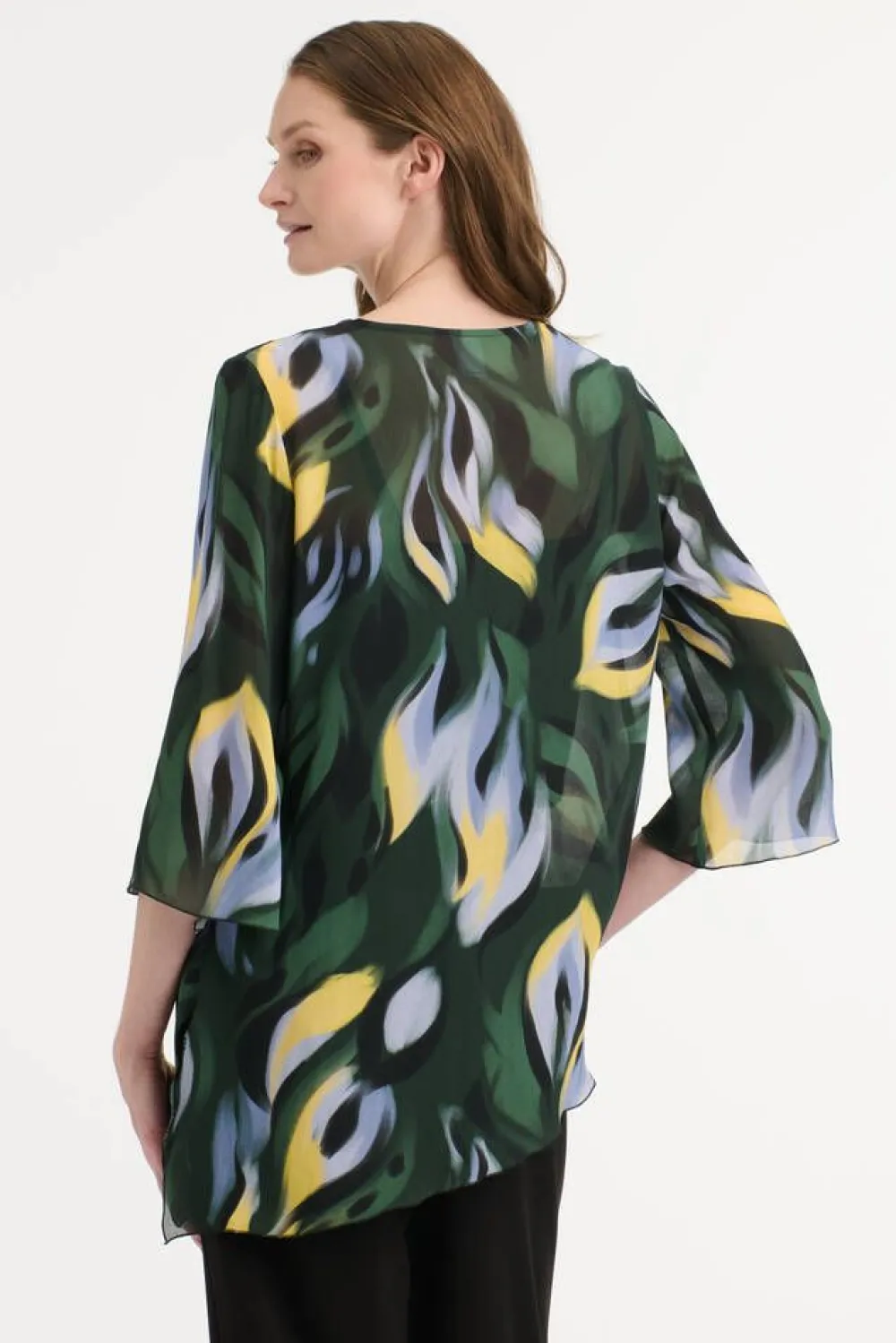 Kaunis läpikuultava kevyt harsomainen pusero värikkäällä printillä. Puserossa on vino kerroshelma ja 3/4 hihat.Lis…