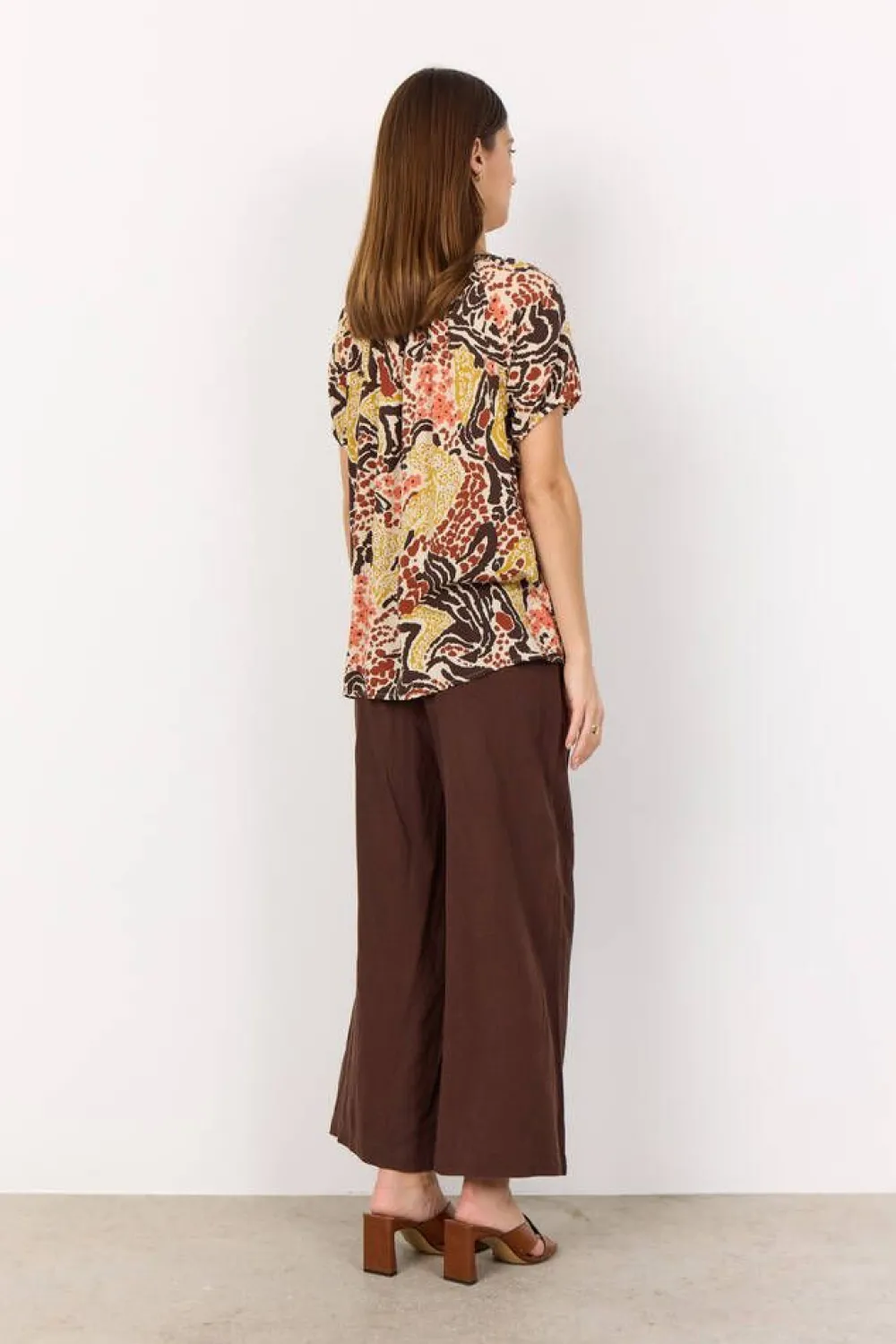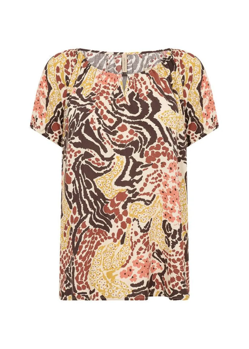 Kevyt ja ilmava lyhythihainen pusero 100% LENZING™ ECOVERO™ -viskoosia. Puserossa on rento istuvuus, kaunis printtik…