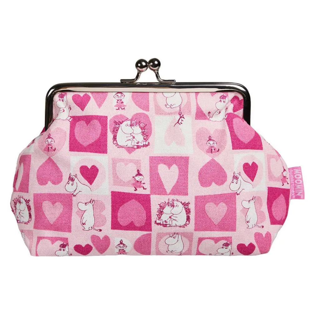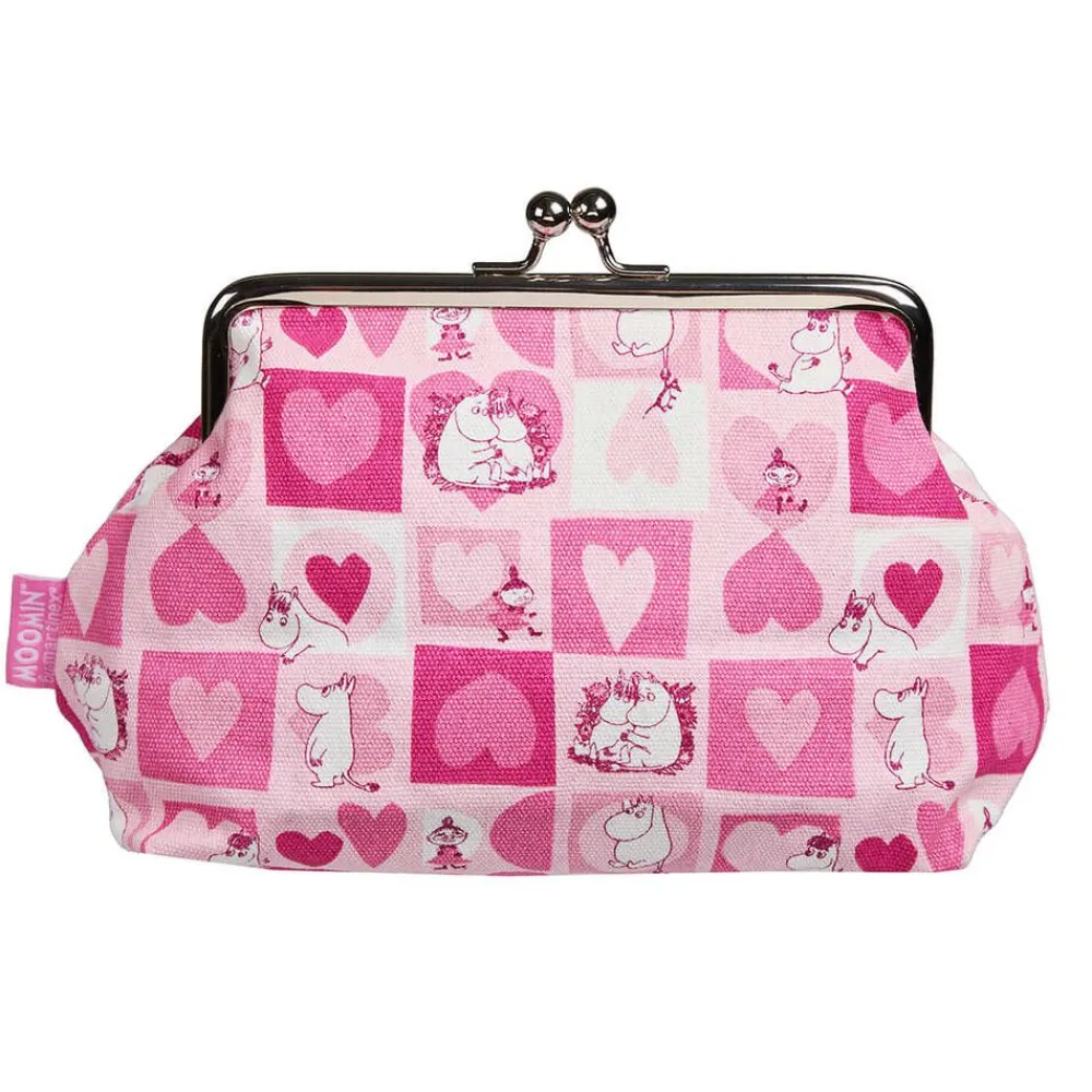 Tukevasta puuvillakankaasta valmistettu muumiaiheinen pussukka. Pussukassa on metallinen nuppilukko ja sen metalliosat o…