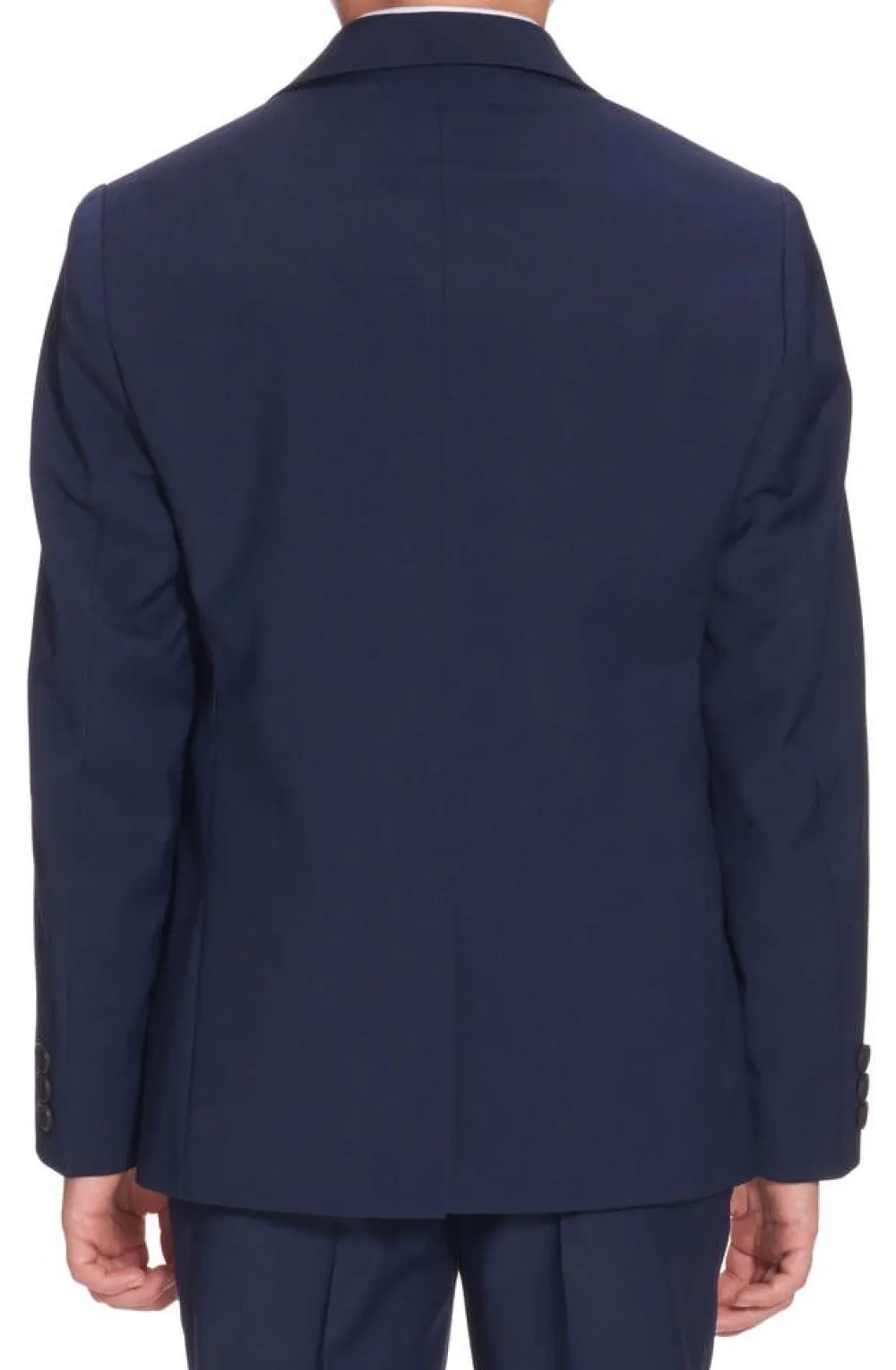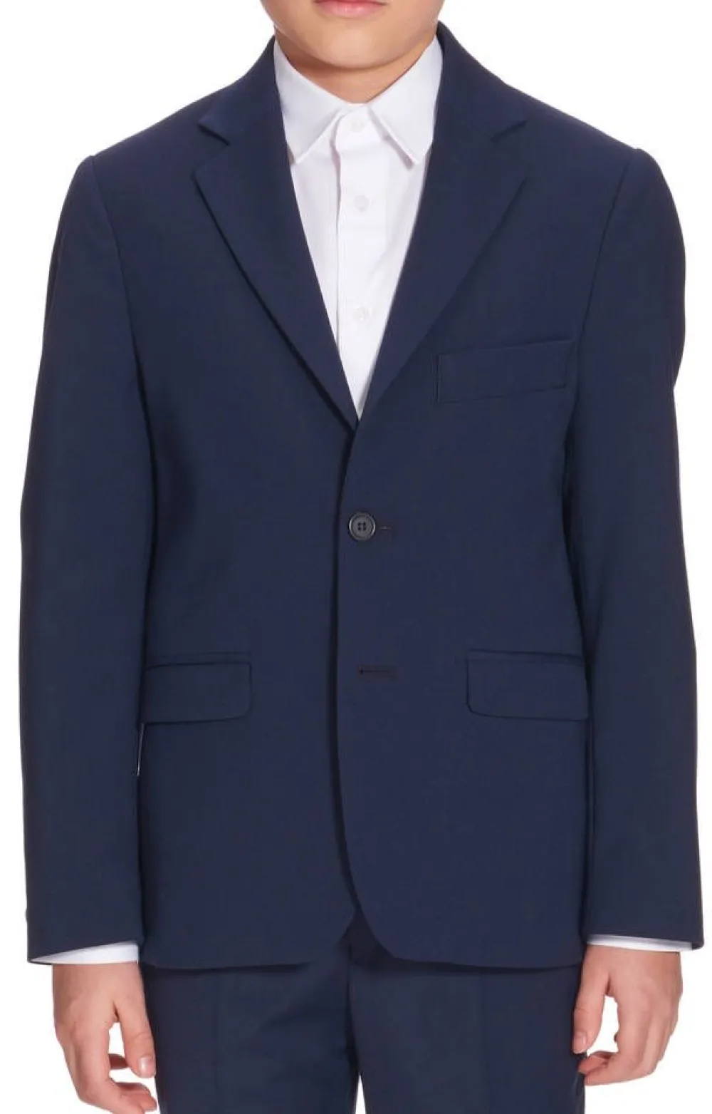 Tyylikäs sininen villasekoitetakki nappikiinnityksellä. Takin etupuolella on kaksi läppätaskua ja sisäpuolella povi…