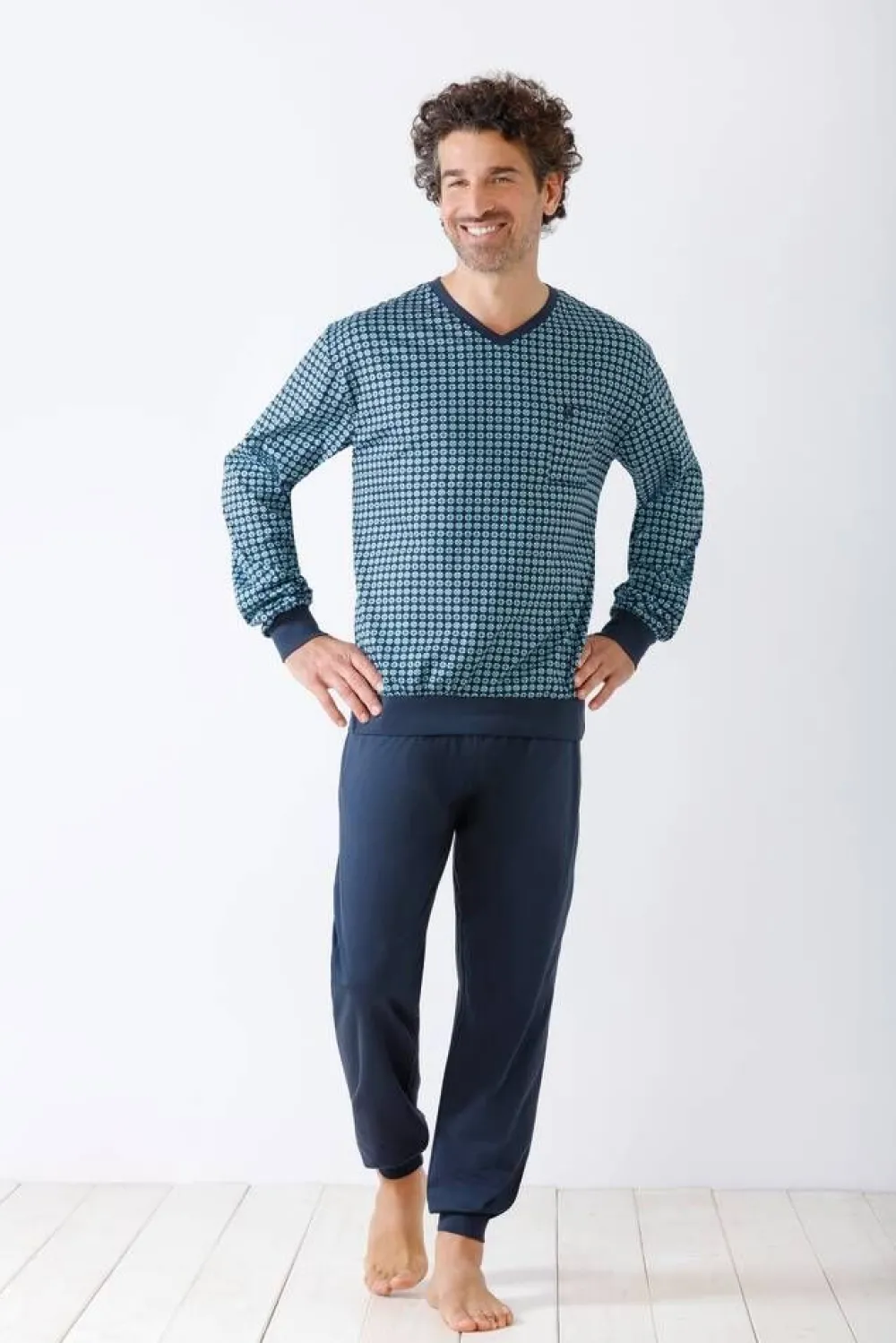 Miellyttävästä Premium-puuvillasta valmistettu pyjamasetti. Hihansuissa ja lahkeissa on joustavat resorit ja paidassa…