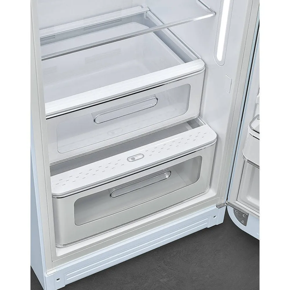 | Jääkapissa on molemmissa reunoissa pitkät LED-valot, joten jääkaappi on hyvin valaistu sisältä |