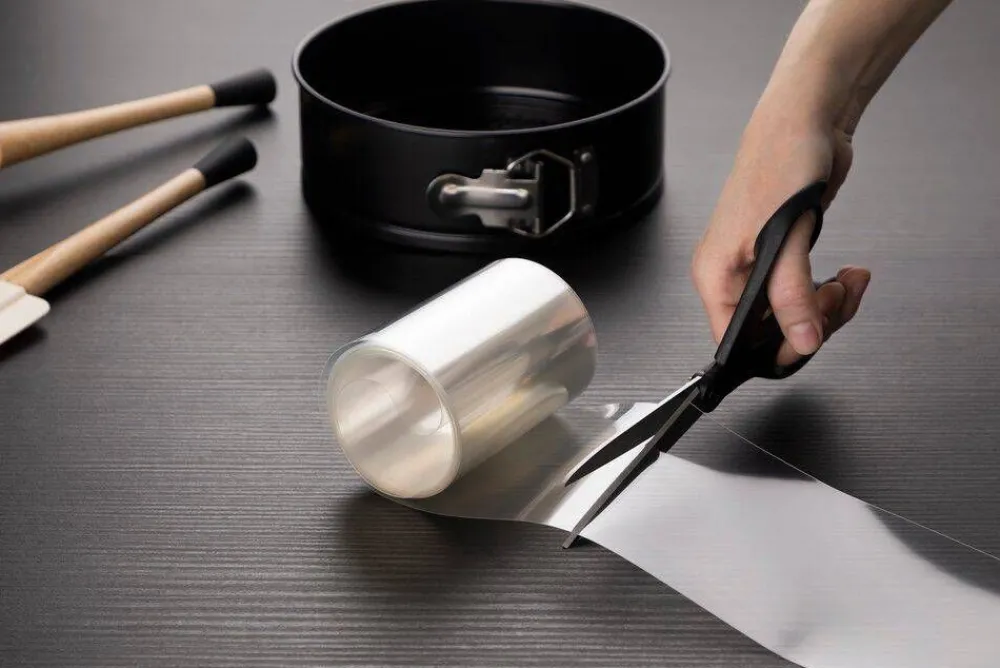 Reunakalvon avulla saat helposti siistit reunat hyydytettäviin kakkuihin. Vuoraa kakkuvuoka reunakalvolla, kaada kakkua…