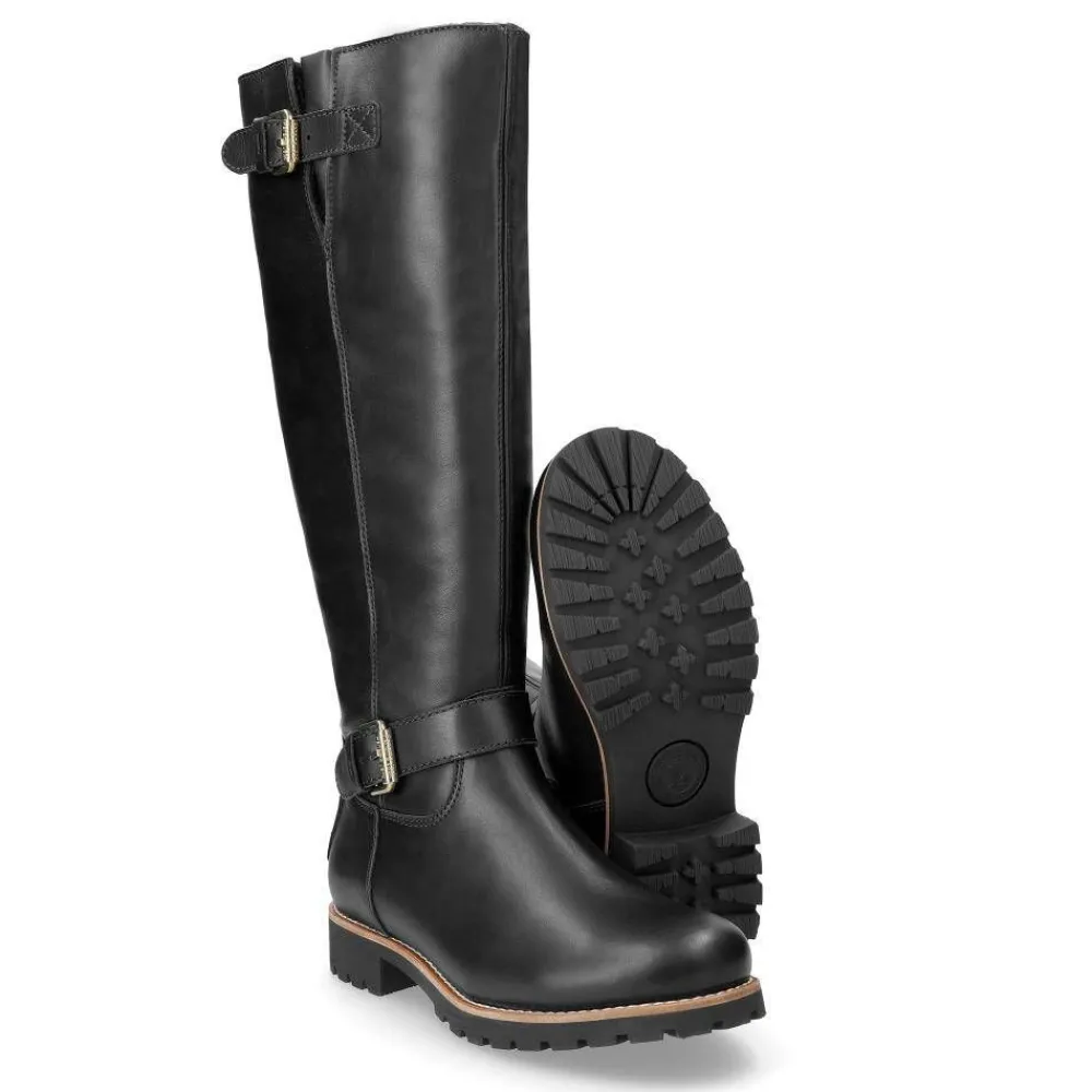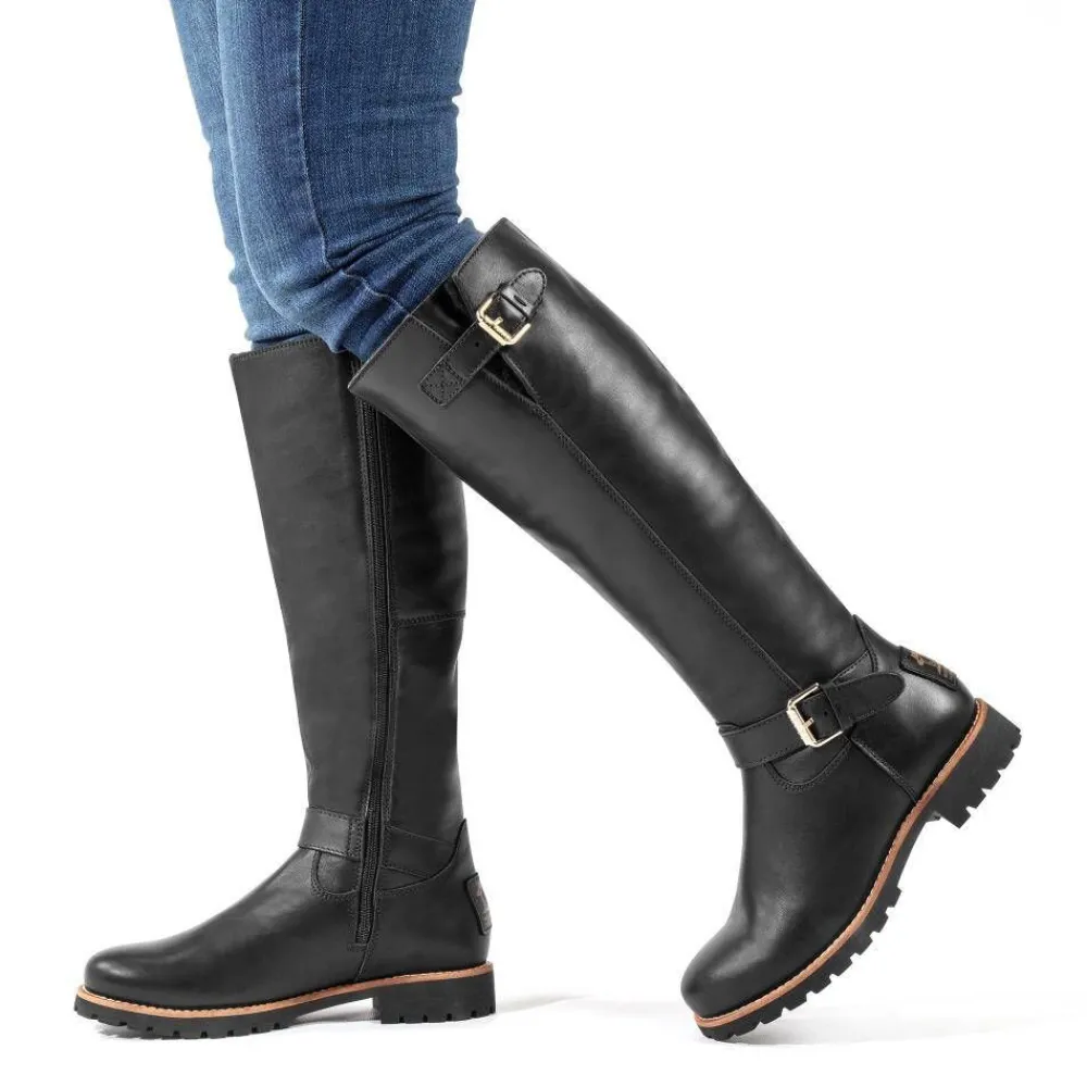 Korkeavartiset nahkasaappaat tyylikkäillä solkiremmeillä ja lämpimällä turkisvuorilla. Tukeva kumipohja ruskealla …