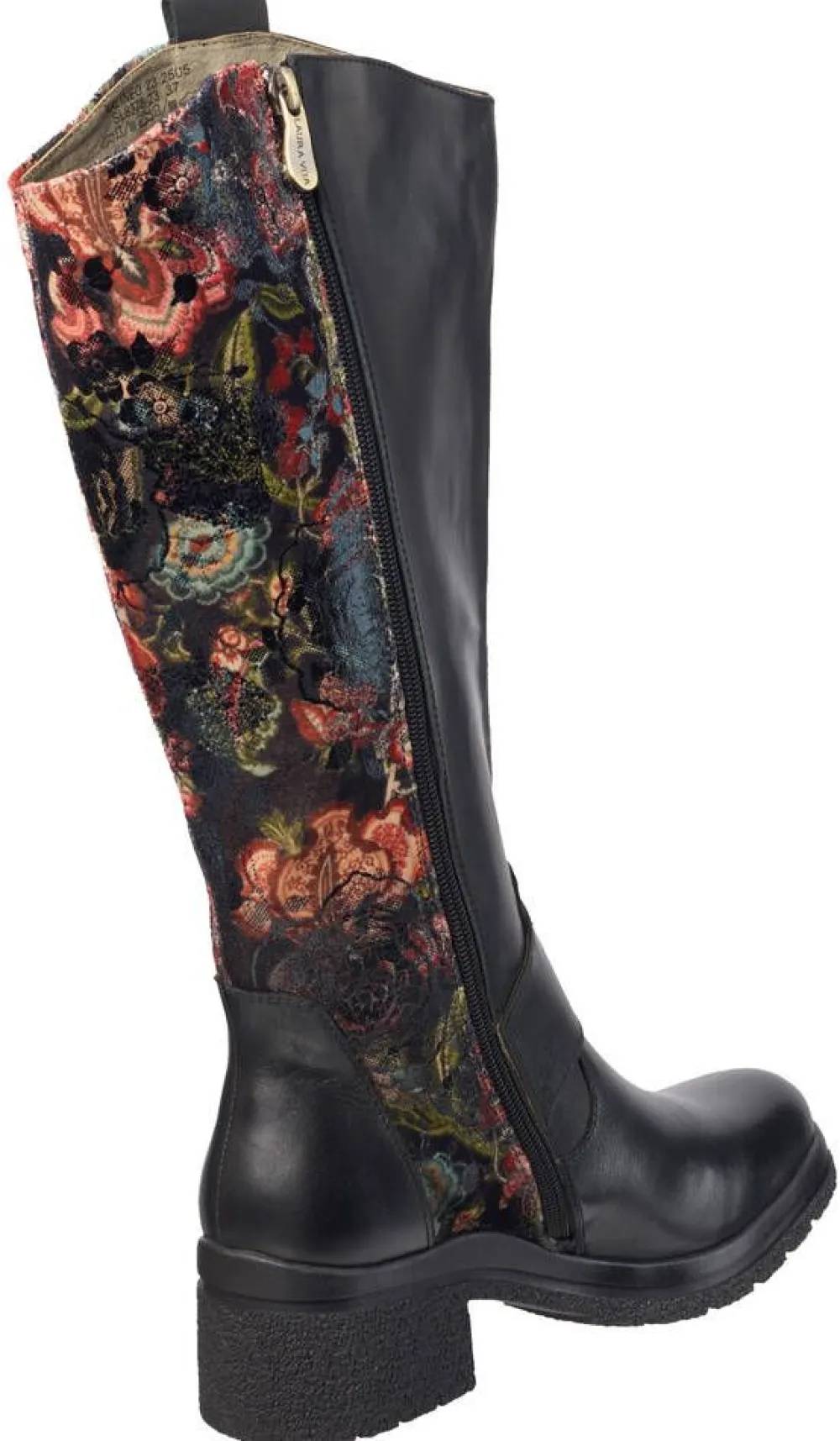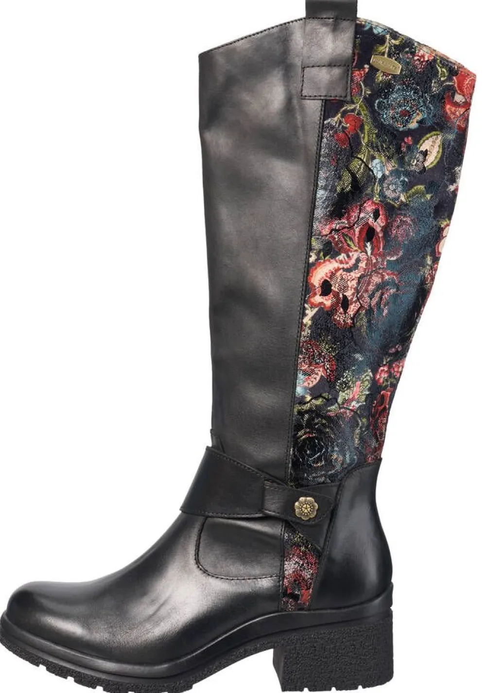 Muotoilustaan tunnistettavat tyylikkäät saappaat nahkapinnalla ja matalalla korolla. Varren takaosa on kuvioitu. Vet…