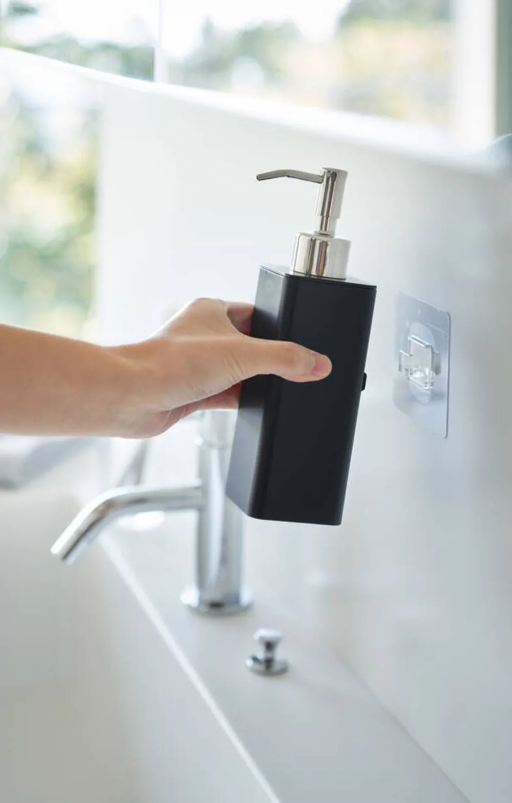 Tower-sarjan tyylikäs saippua-annostelija kiinnitetään seinään film hook -kiinnikkeillä. Film hook -kiinnikkeiden …