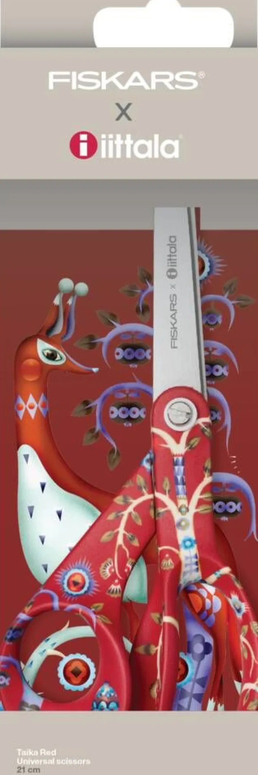 Punapohjainen Taika-kuvio kuljettaa taianomaiseen maailmaan nyt tutuissa Fiskars-saksissa. Klaus Haapaniemen suunnittele…