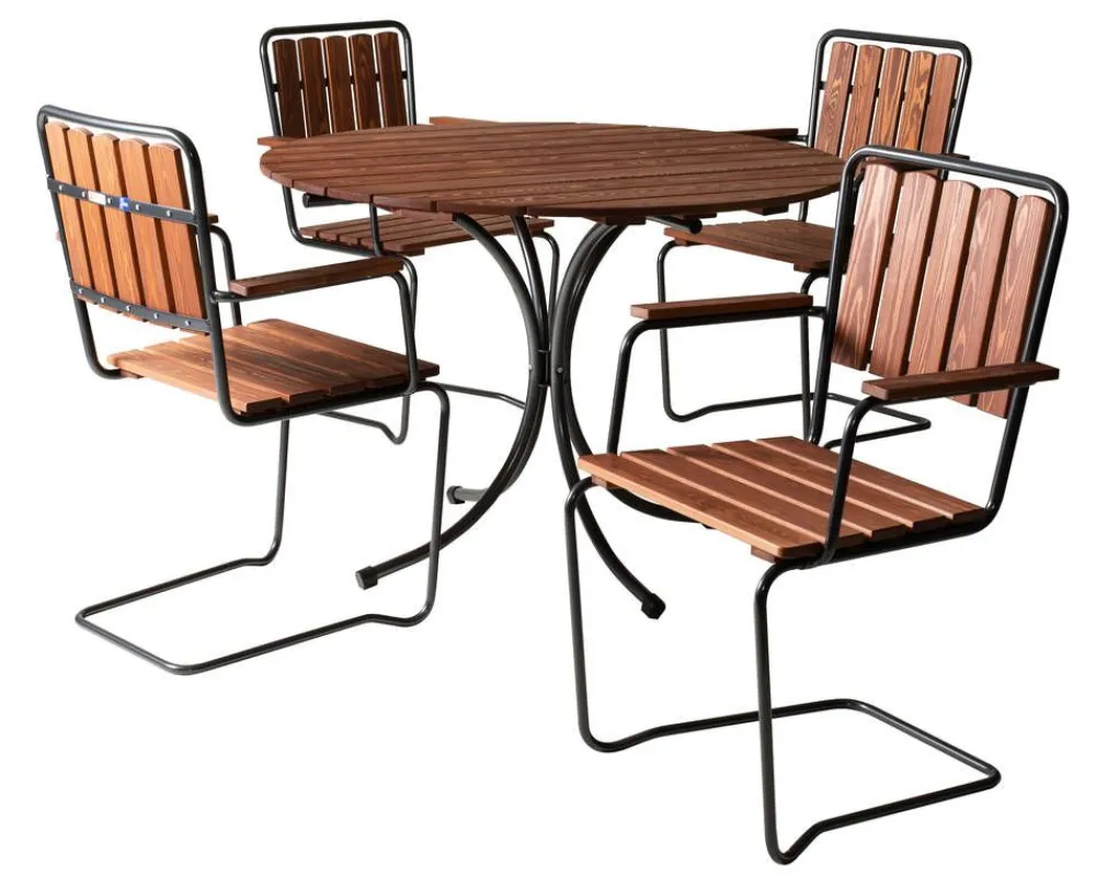 | Materiaali:Pulverimaalattu teräsputkirunko, puuosat ruskeaksi maalattua mäntyä |
