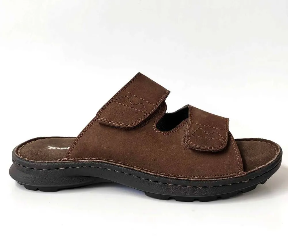 Mokkanahkaiset sandaalit päällipuolen tarrakiinnitteisillä tarraremmeillä.Lisää tietojaTehosteosat pintanahkaaKiin…