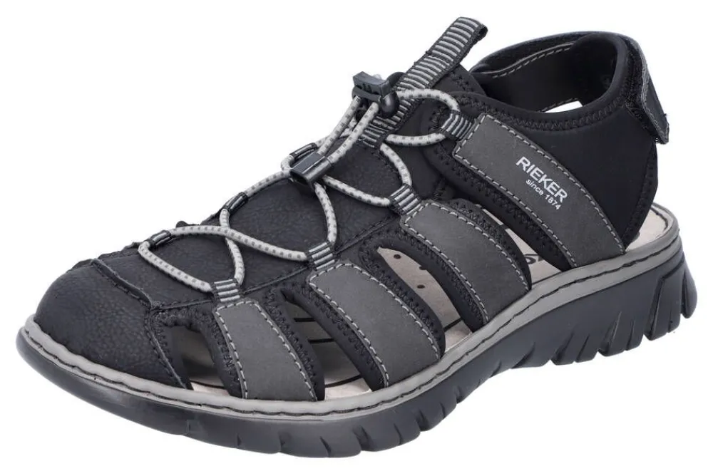 Miesten sandaalit, joissa on joustonauhat pikalukolla ja tarranauhakiinnitys kantaremmissä.Lisää tietojaHoito-ohje: P…