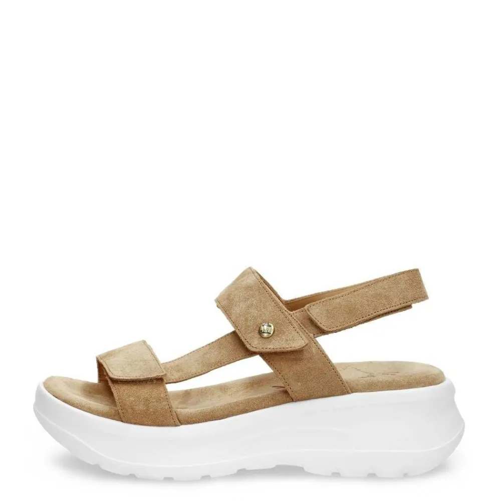 Miellyttävät ja tyylikkäät sandaalit kolmella tarraremmillä. Kengässä on nahkainen vuori ja sisäpohja, sekä pak…