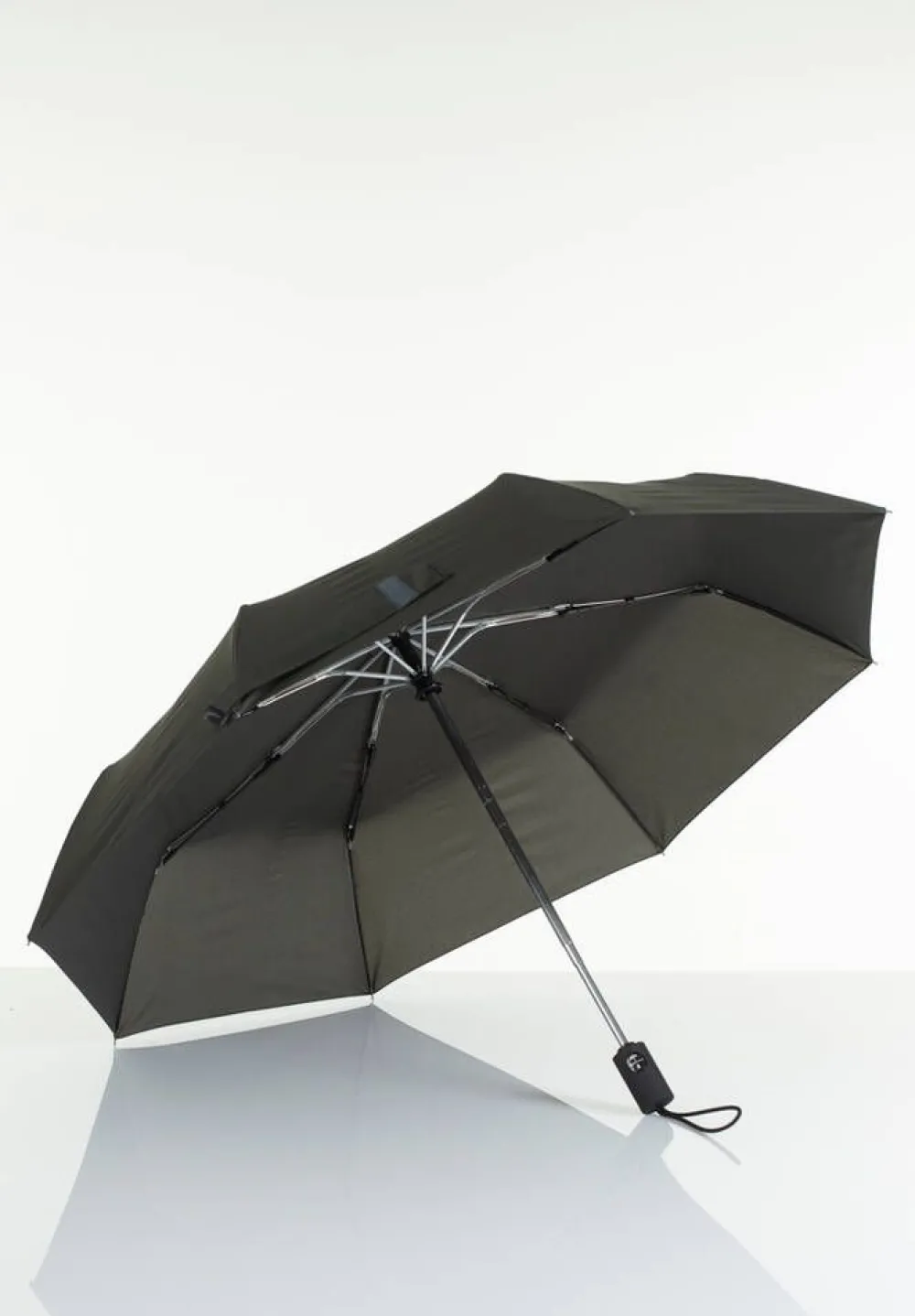 Täysautomaattinen kokoontaitettava sateenvarjo. Kangasosat polyesteriä. Teräsvarsi ja neopreenipinnoitettu liukumaton…