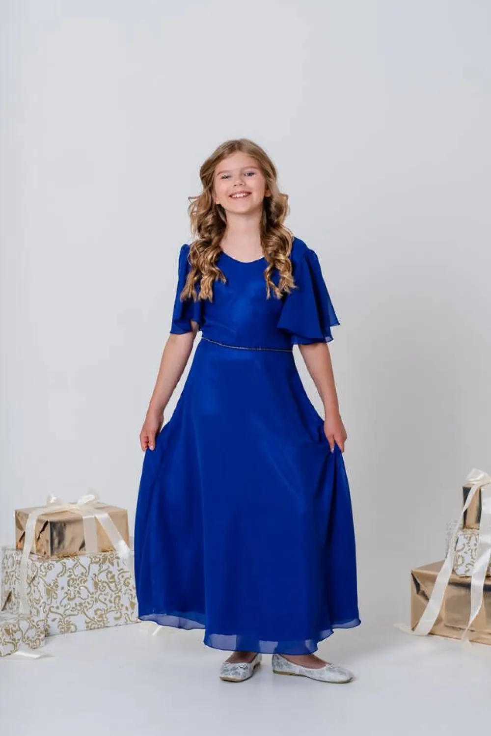 Pitkä sifonkimekko kauniilla perhoshihoilla ja vyötärön timanttinauhalla.Lisää tietojaHoito-ohje:Vesipesu 30Istuvu…
