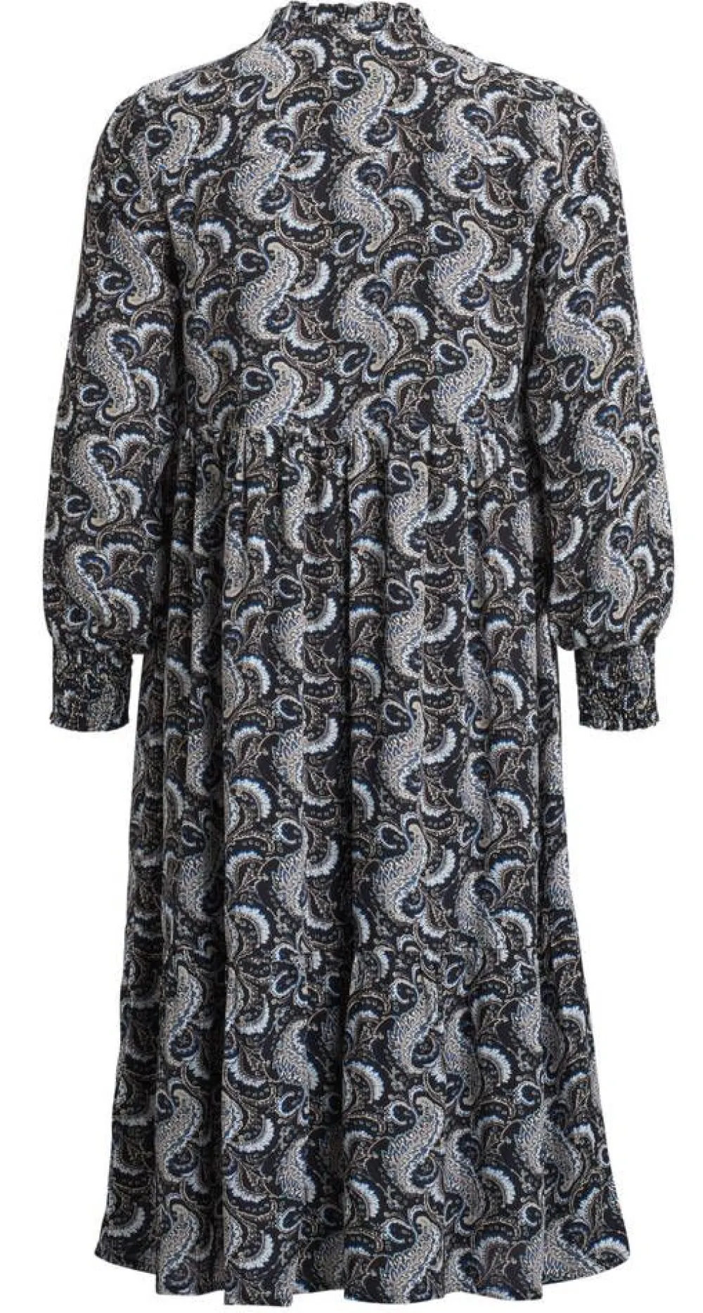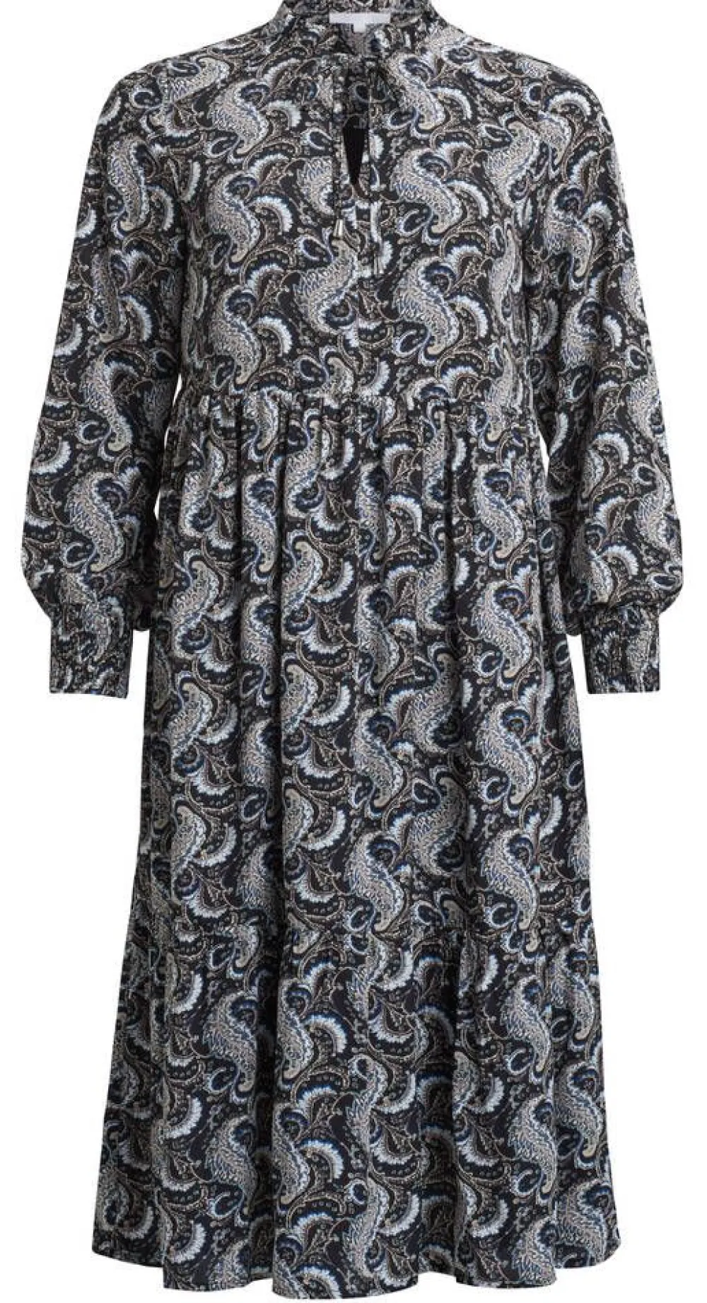 Paisley-kuosinen sifonkimekko pitkillä hihoilla. Mekon pääntiellä on solmittavat nauhat ja sisäpuolella miellyttäv…
