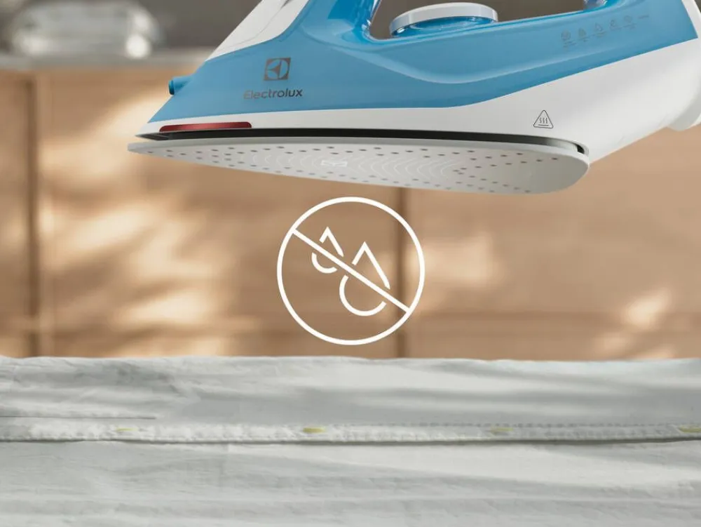 | Minimoi vaatteisiin syntyvien vesiläikkien riski. Tippalukko, silitysraudan sisälle sijoitettu kaksoissuoja, estää veden pääsyn höyrysäiliöön, kun lämpötila on liian matala. |