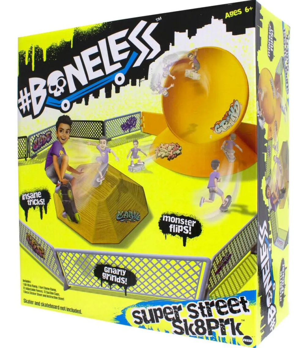 Treenaa skeittitemppuja Boneless-skeittipuistossa. Rullaile aidatulla alueella ja tee komeita voltteja. Paljon skeittare…