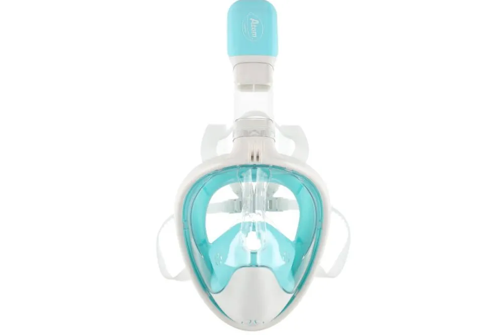 Maski ja snorkkeli yhdessä. UV suojattu maski.Lisää tietojaMateriaali:PCMitat:20x43x20Tuotteen väri:turkoosi/valko…