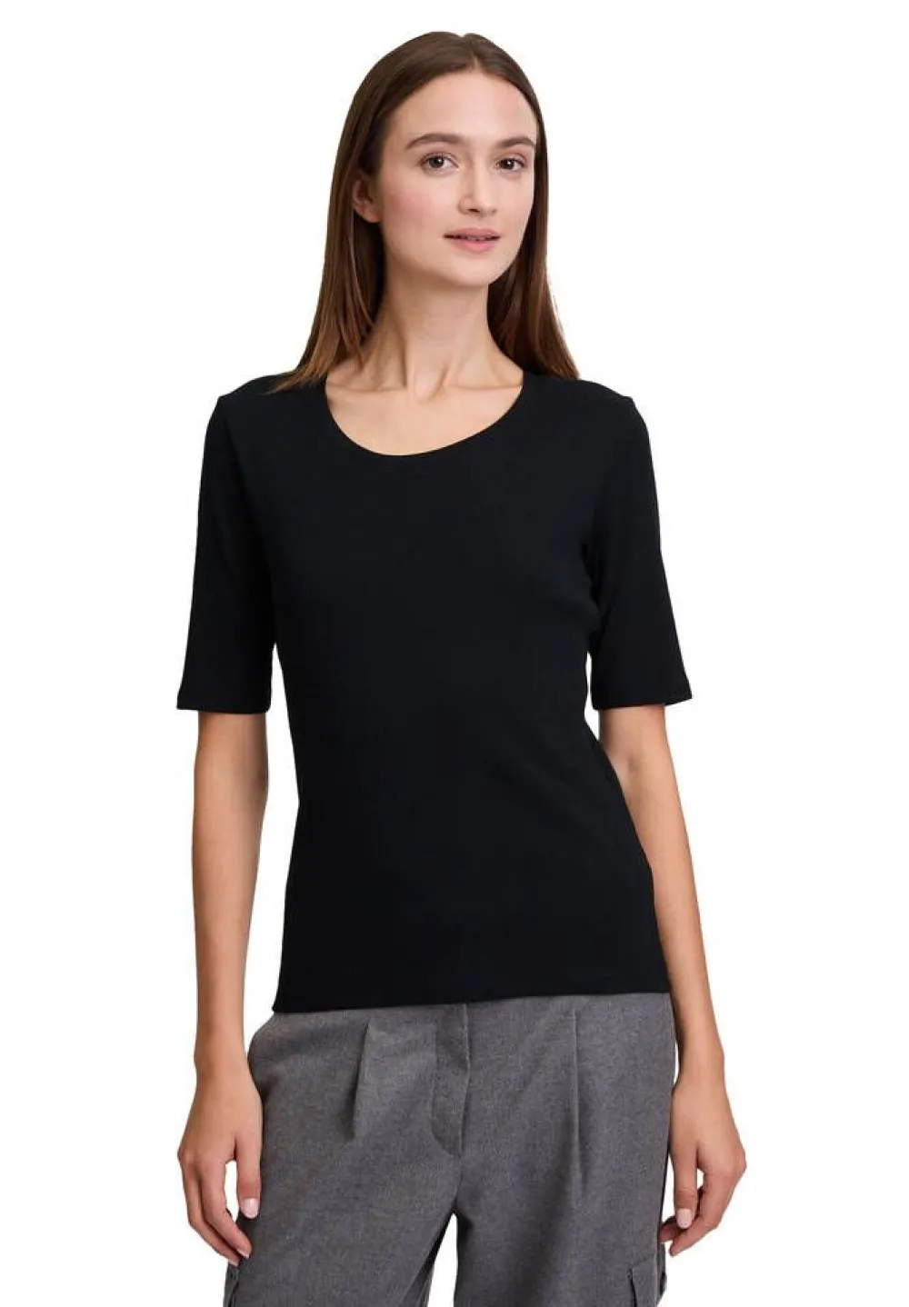 Klassisen tyylikäs ja monikäyttöinen musta perusmallinen t-paita 2/3 hihoilla. Paidassa on tilava pyöreä pääntie….