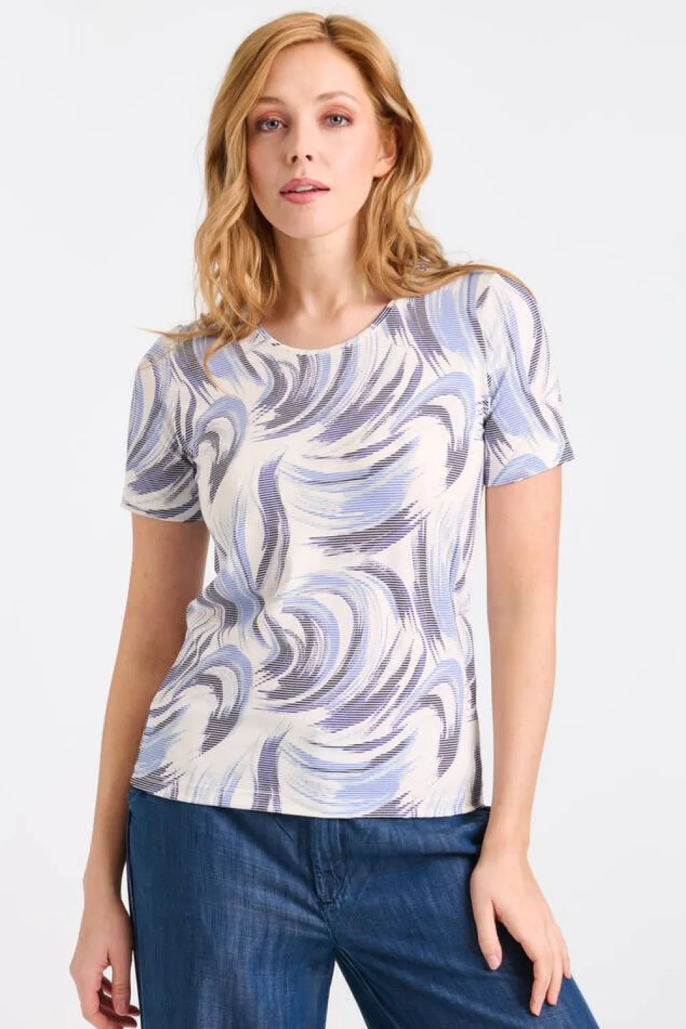 Lyhythihainen joustava trikoopaita kuvio-/raitaprintillä.Lisää tietojaMalli käyttää kokoa SMallin mitat: rinnanymp…