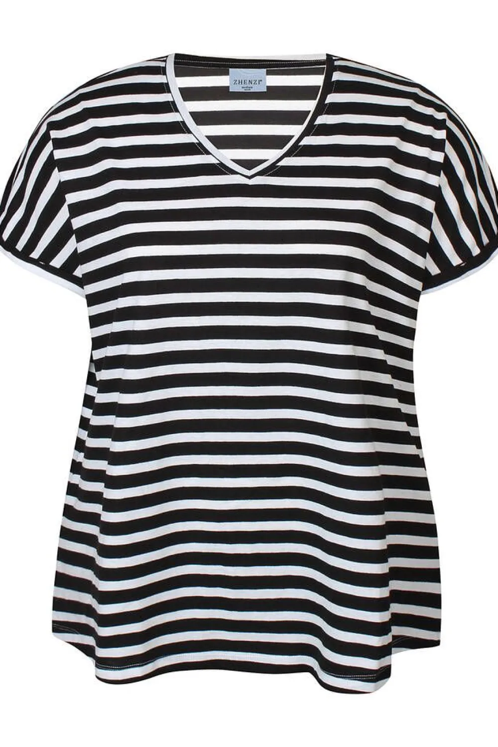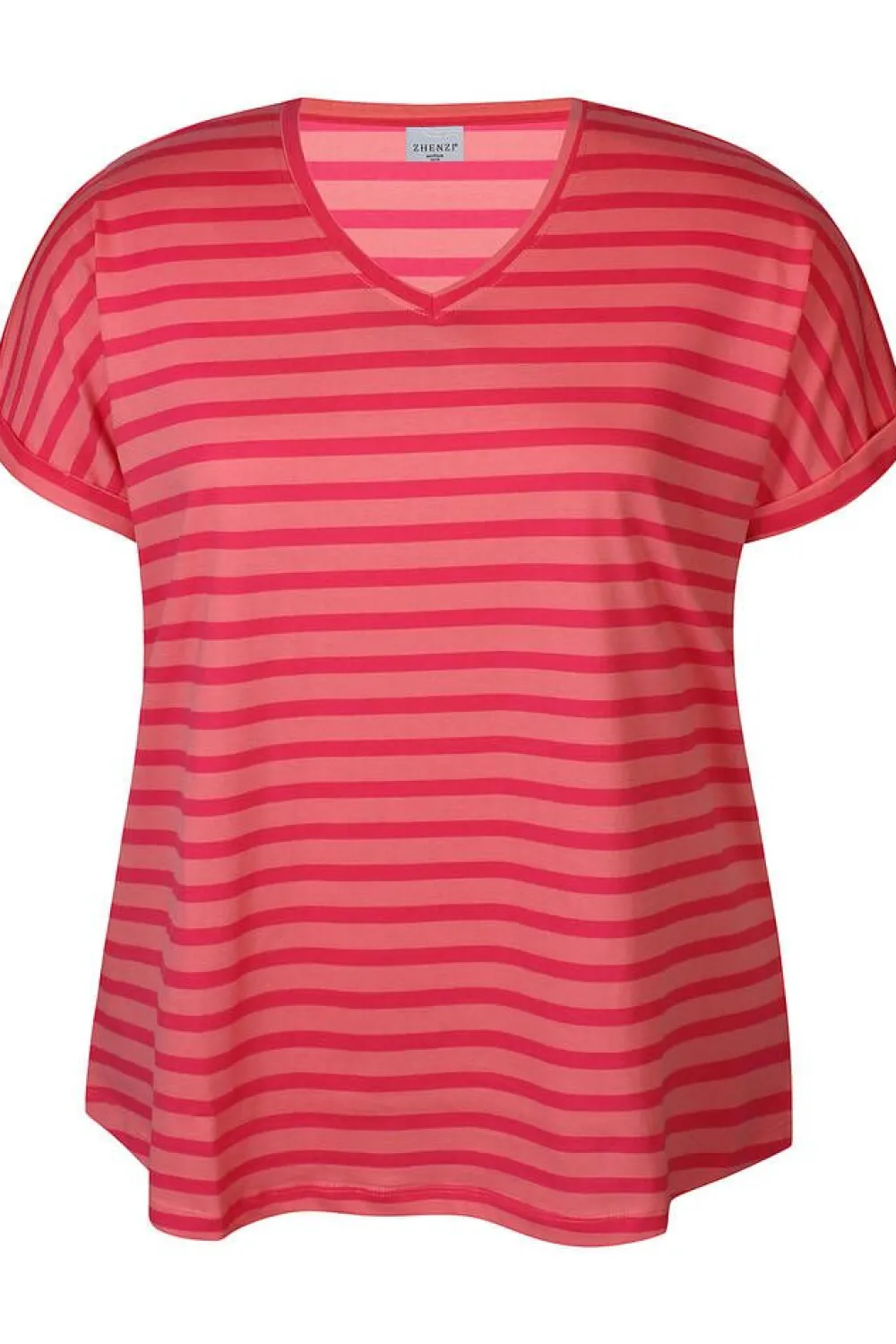 Raidallinen lyhythihainen trikoopaita kesän trendikkäissä väreissä. T-paidassa on v-pääntie, madalletut olkapää…