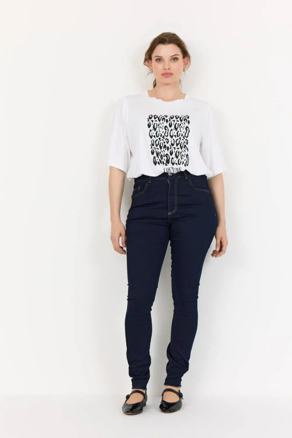 Yksivärinen t-paita eläinkuosisella etuprintillä. Pyöreä pääntie ja lyhyet hihat tekevät mallista rennon ja help…