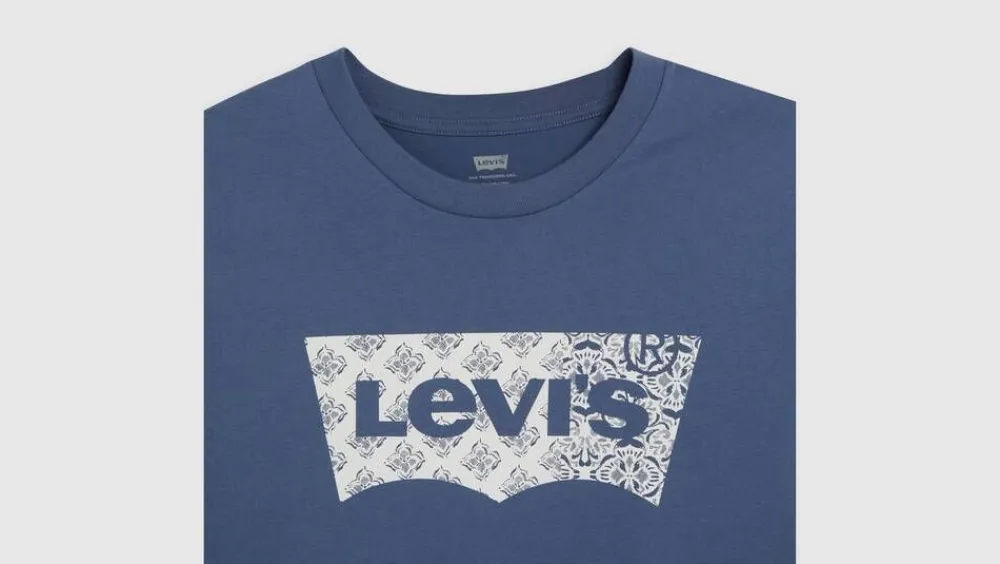 Lyhythihainen trikoopaita pyöreällä pääntiellä pehmeää puuvillaa. Etupuolella valkopohjainen Levi’s-logoprintti….