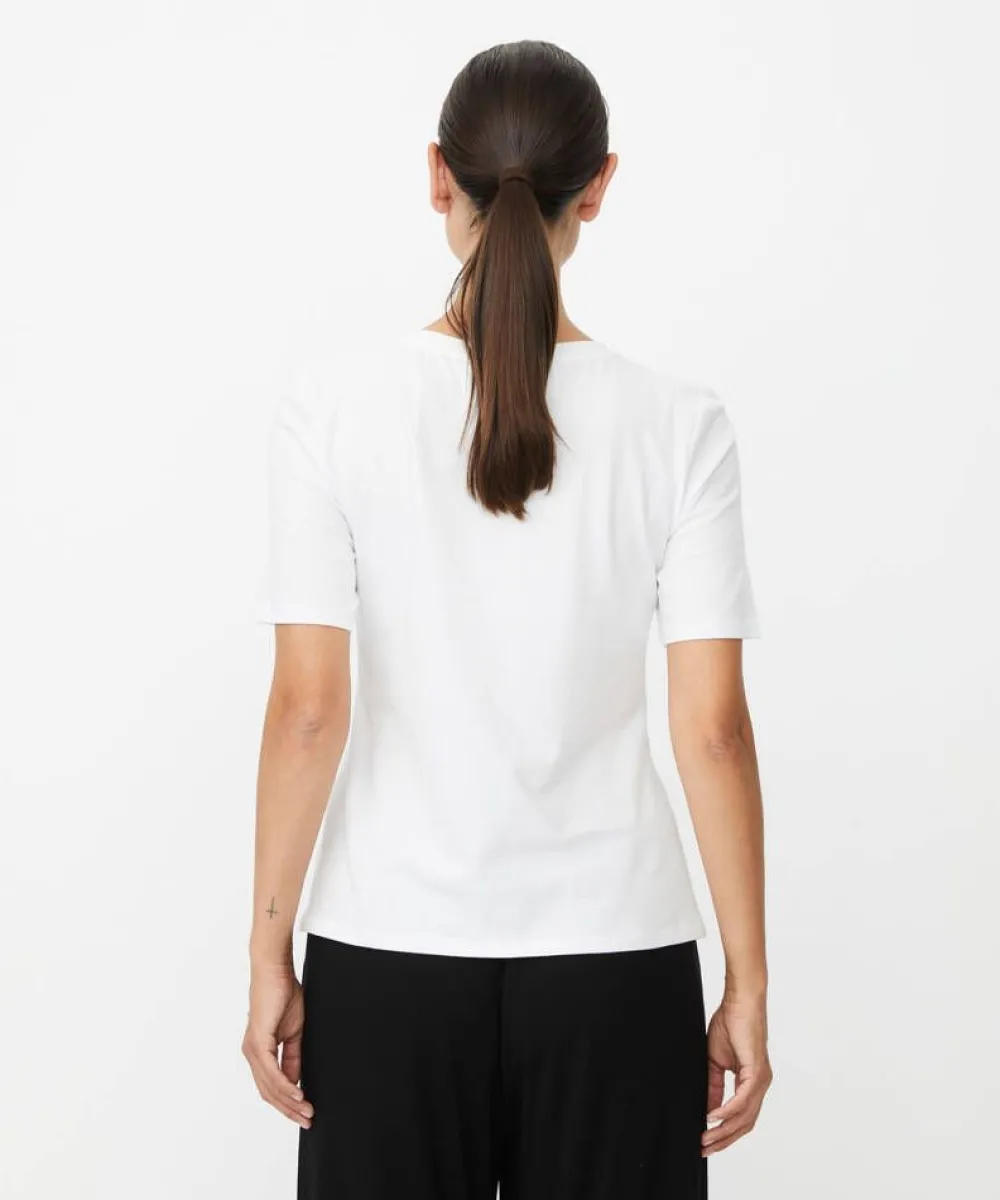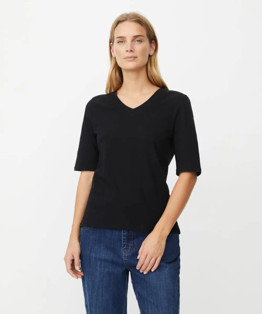 Naisten pehmeä peruspaita. V-pääntie, kyynärpituiset hihat ja kevyesti muotoiltu istuvuus tekevät tästä arjen mon…