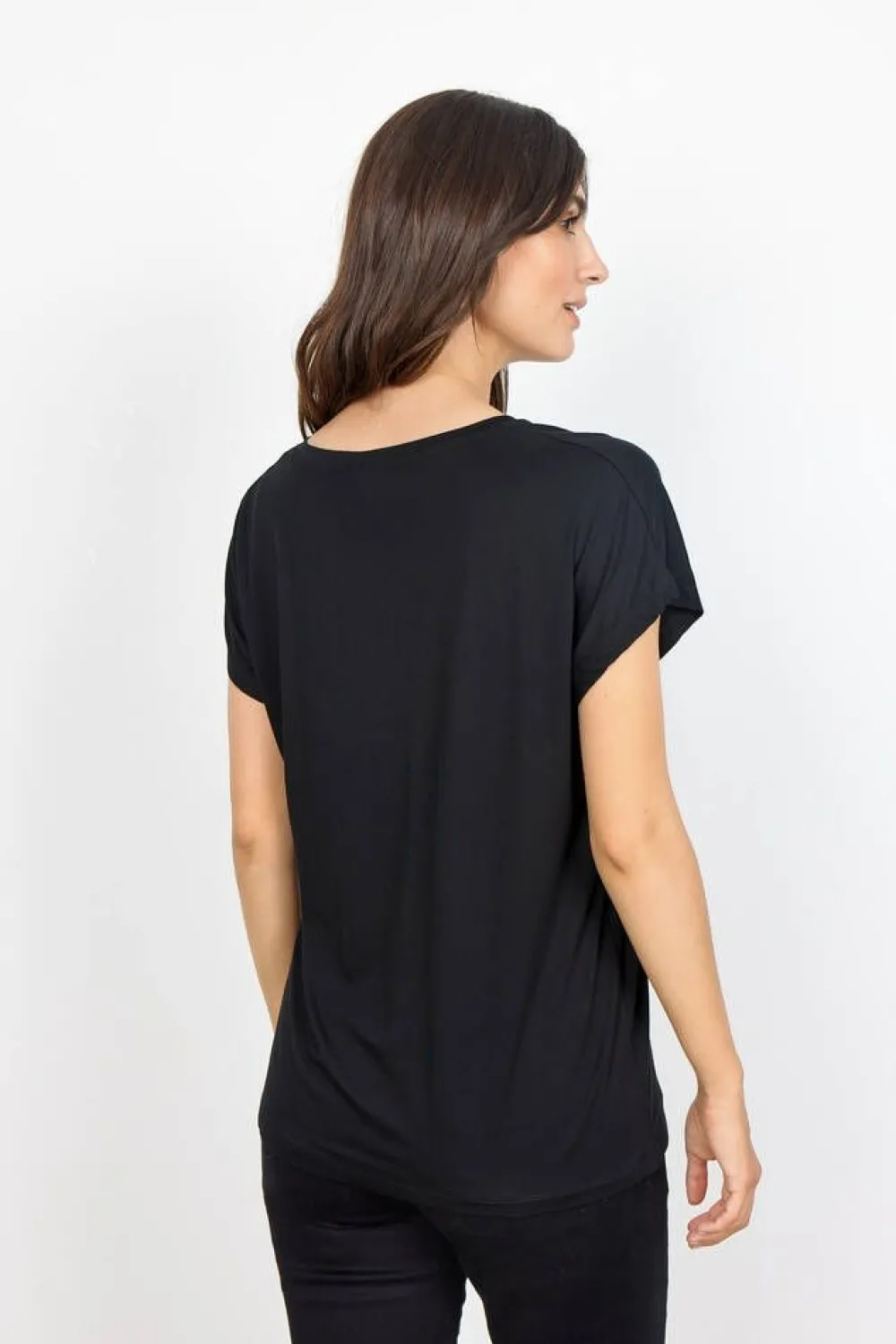 Naisten yksivärinen t-paita v-pääntiellä.Lisää tietojaHoito-ohje:Vesipesu 30Materiaali:93% lyocell, 7% elastaaniVa…