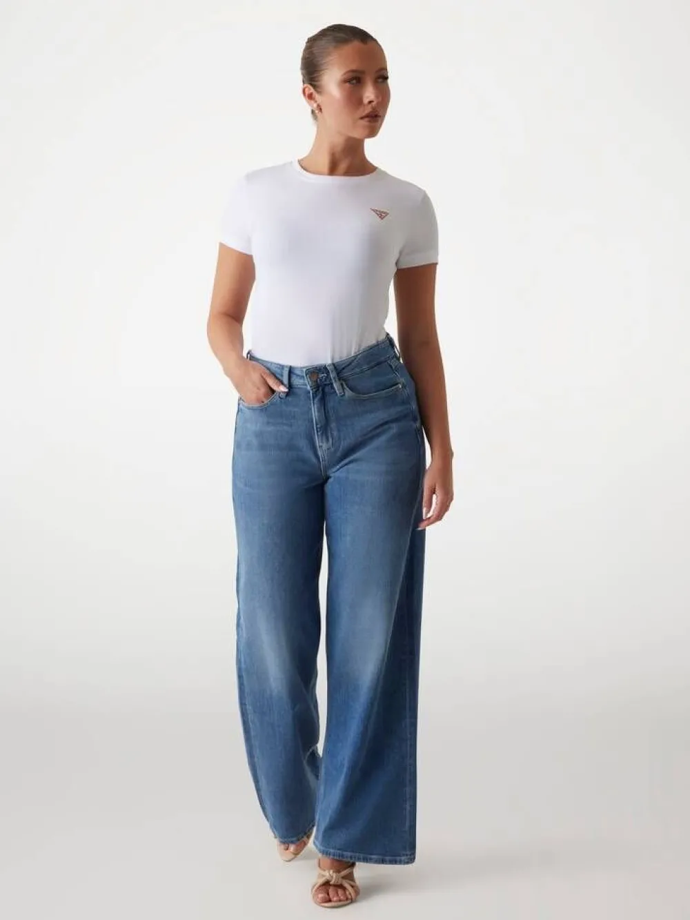 Naisellinen tyköistuva t-paita pyöreällä pääntiellä, rinnassa on pieni Guess-logo.Lisää tietojaMateriaali:95% p…