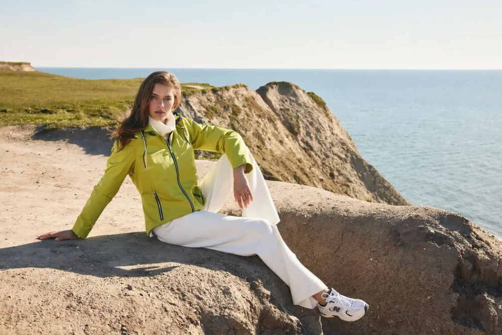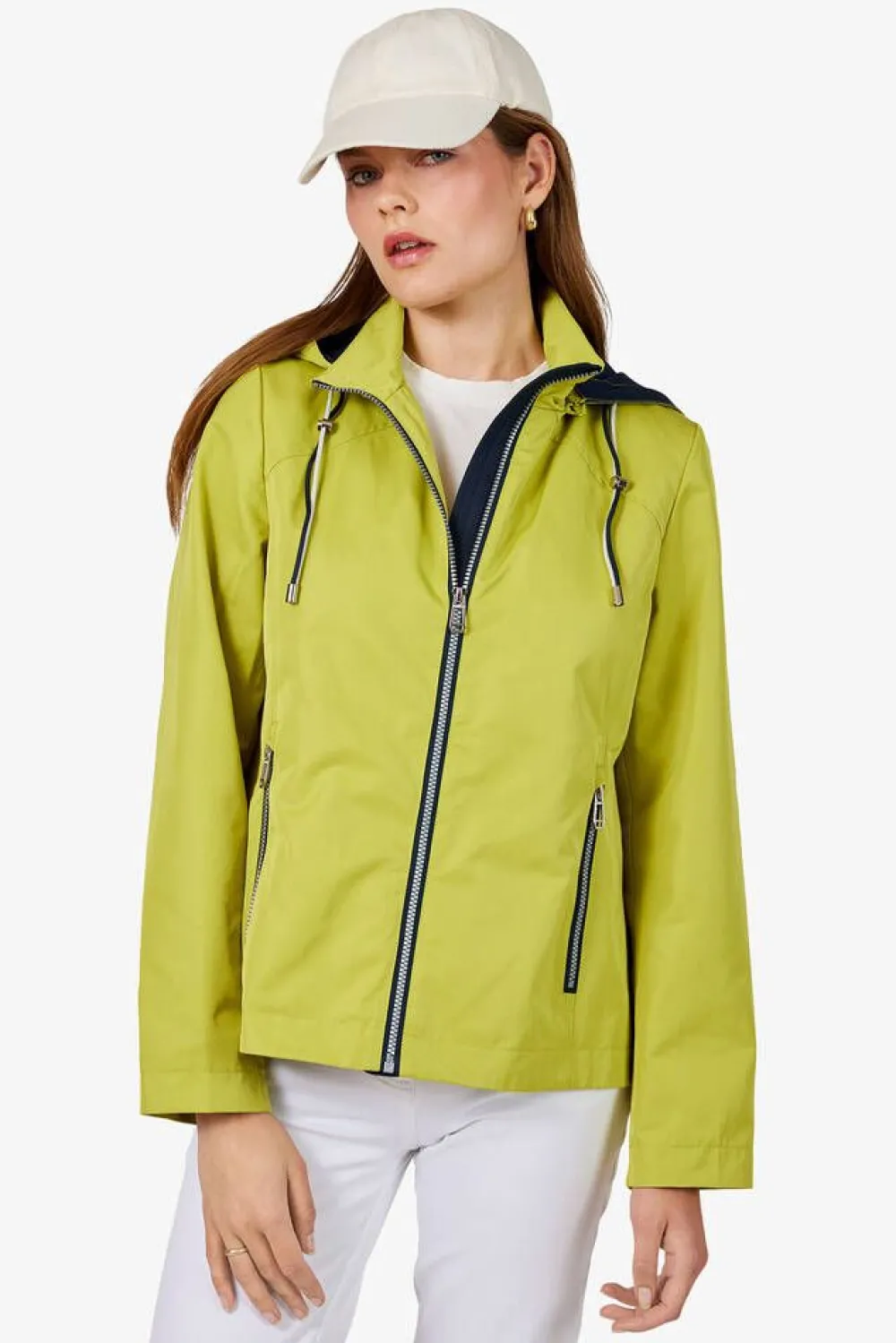 Sporttinen kaksivärinen ulkoilutakki irroitettavalla hupulla. Vyötäröllä säädettävä kiristysnauha ja sivuilla v…