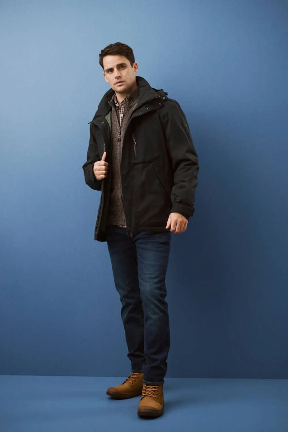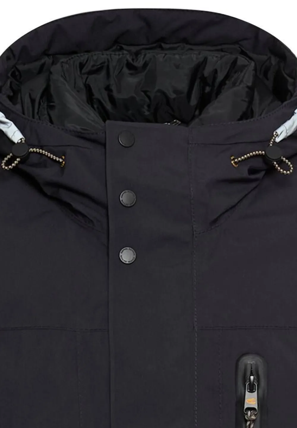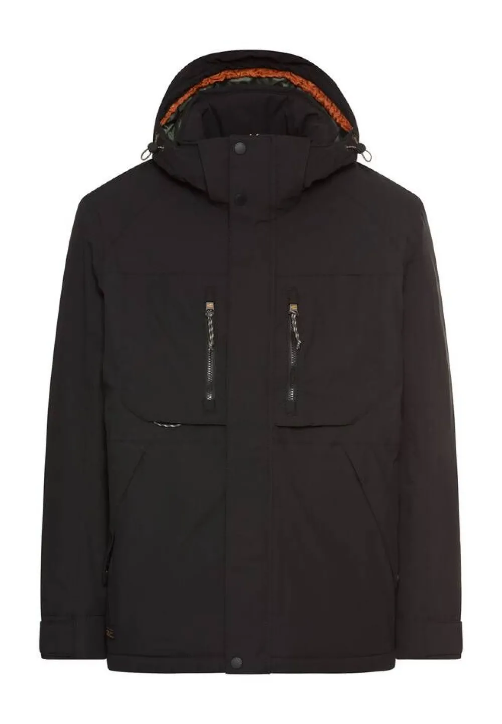 Klassinen lämmin takki vanutäytteellä ja hupulla, jossa on kiristysnyörit. Edessä vetoketju ja nepparikiinnitteinen…