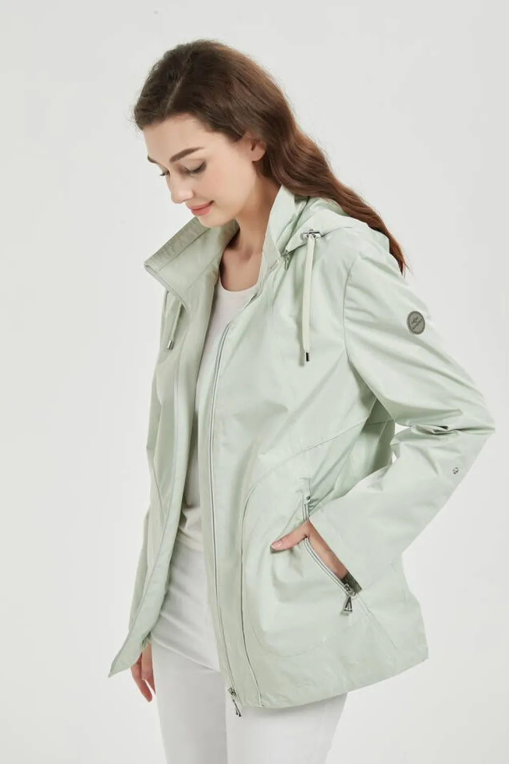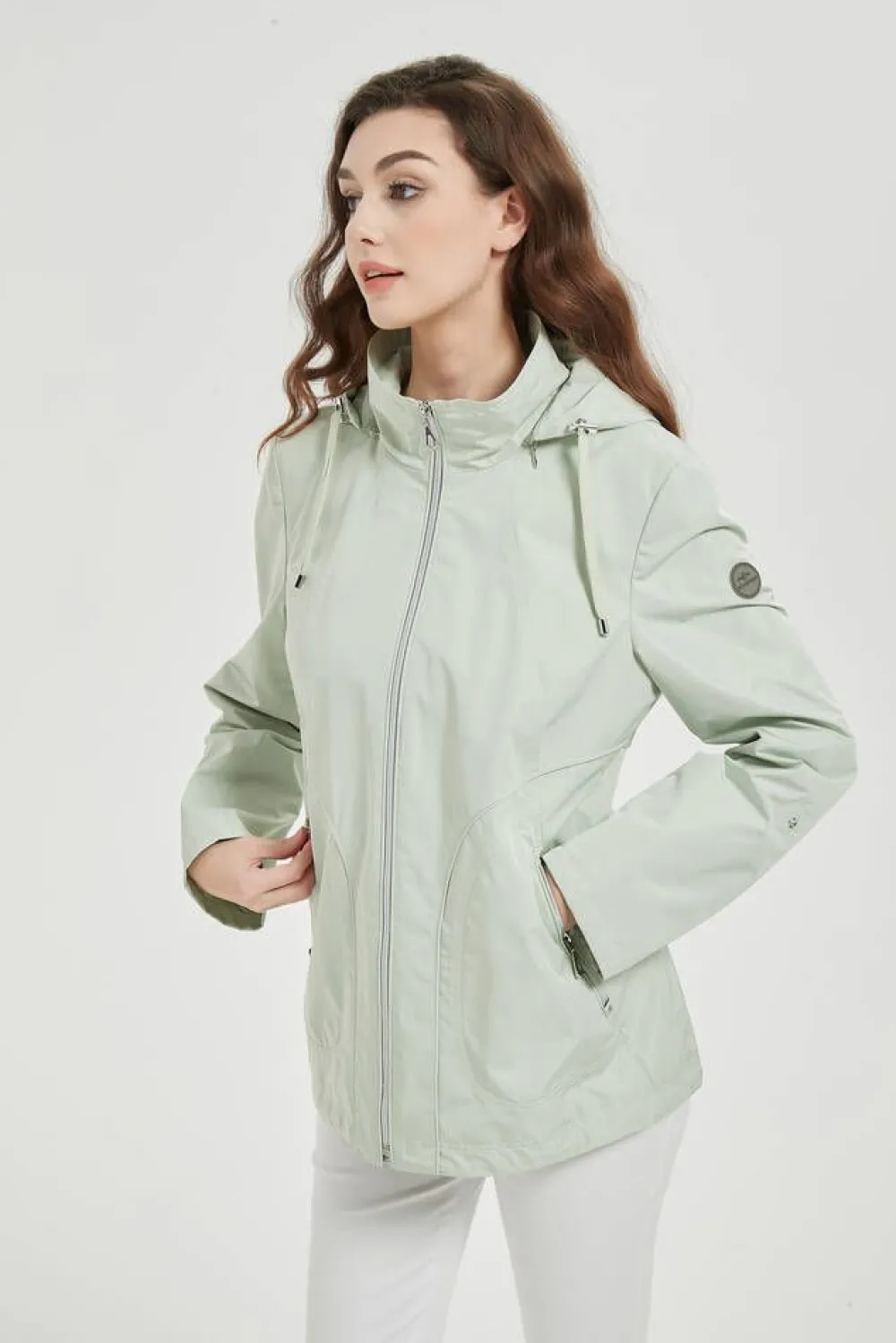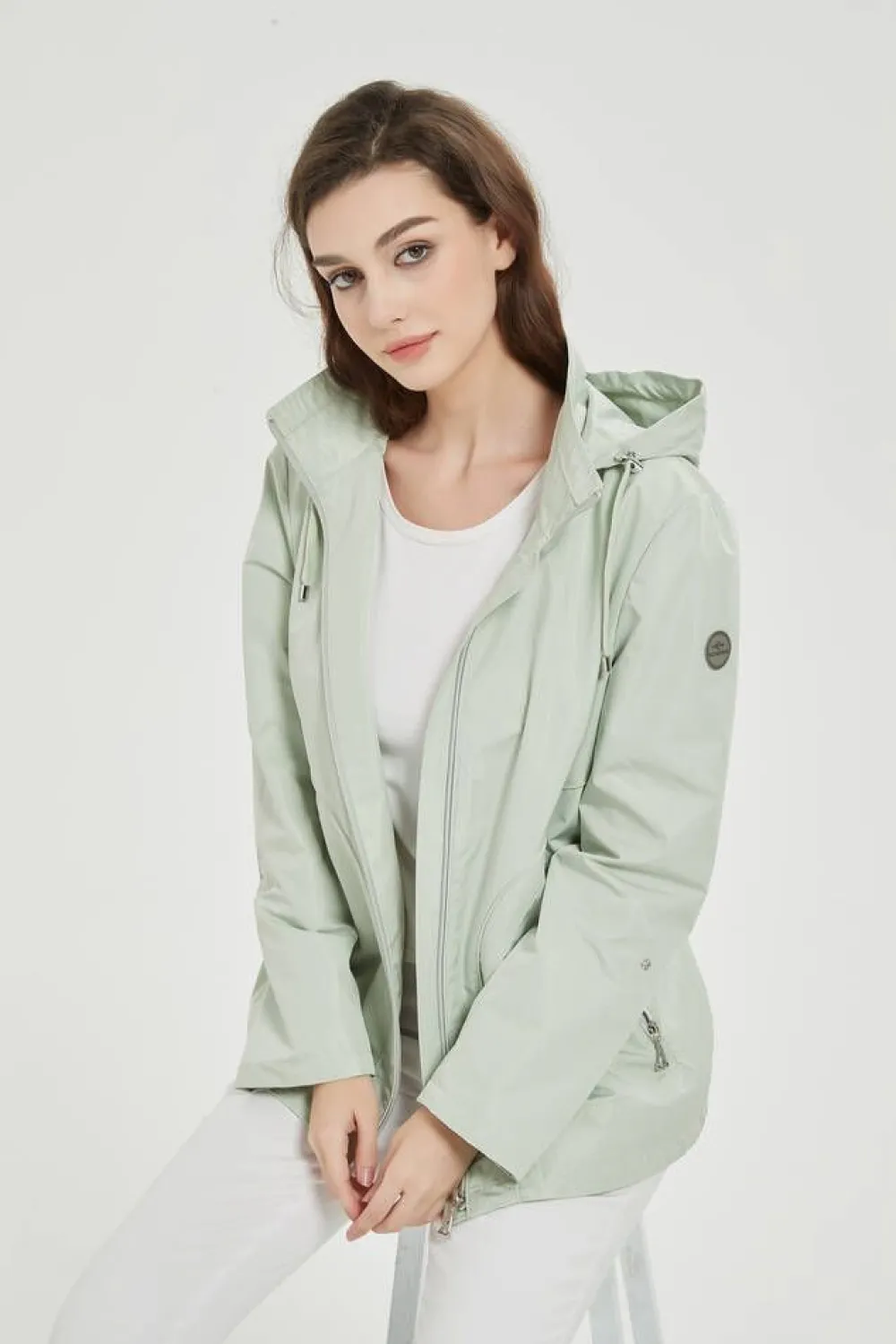 A-linjainen takki irrotettavalla hupulla ja vetoketjukiinnityksellä. Takissa on nepparikiinnitteiset käännettävät h…
