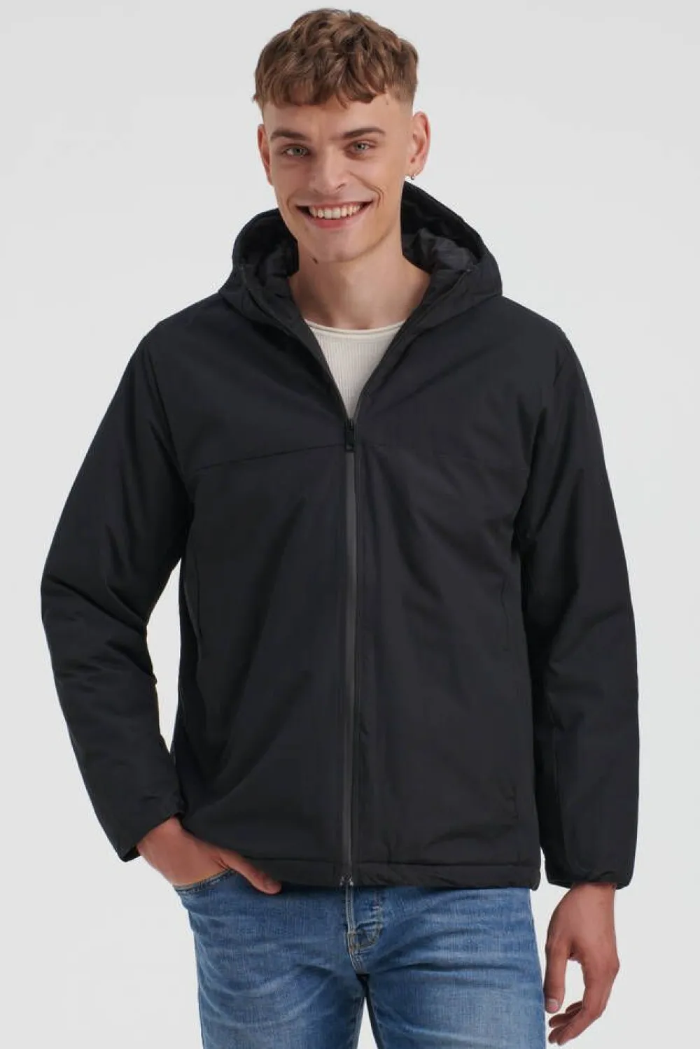 Sporttinen toppatakki kiinteällä hupulla ja pystykauluksella. Etupuolella on vetoketjukiinnitteiset taskut ja helmassa…