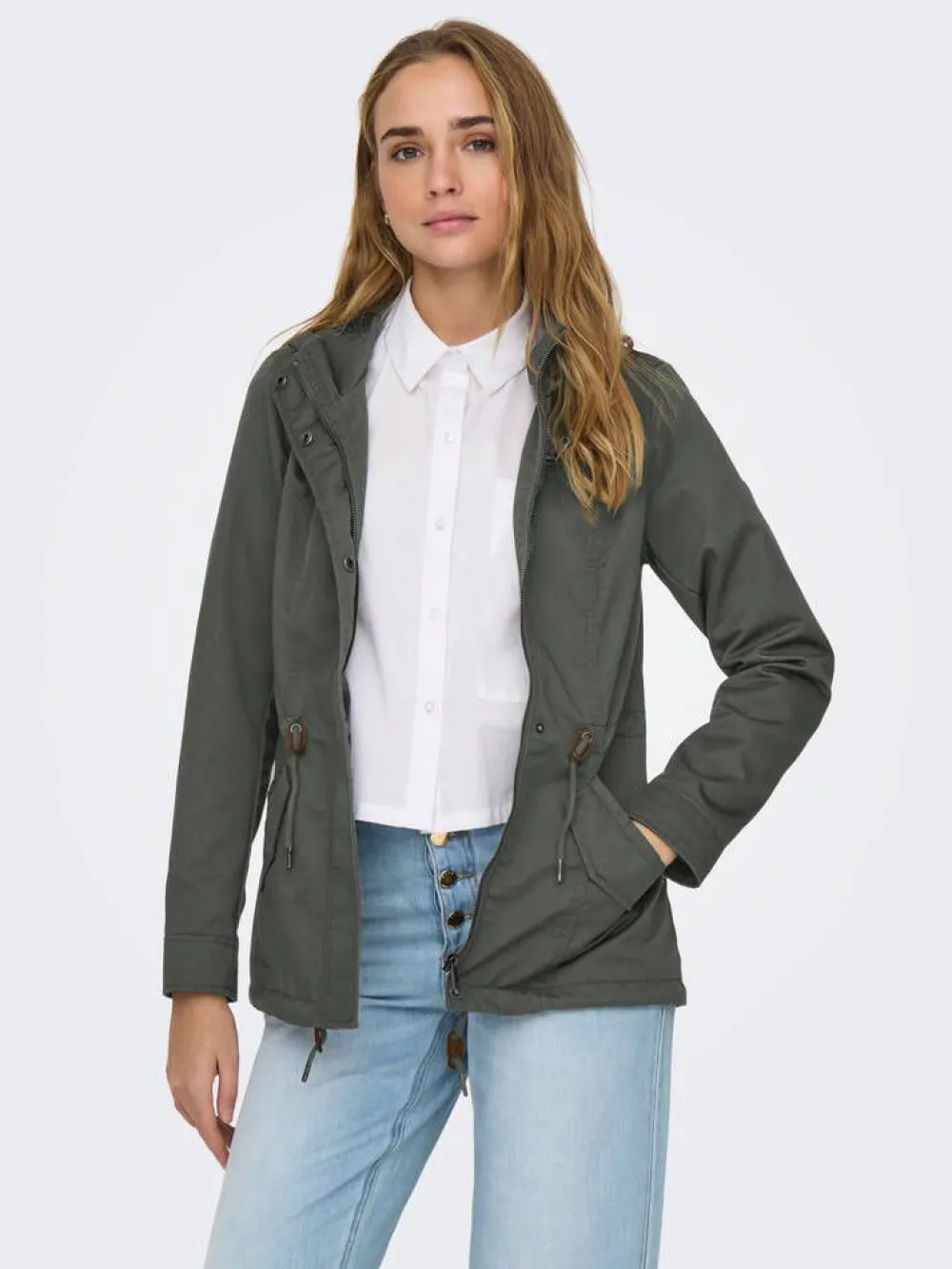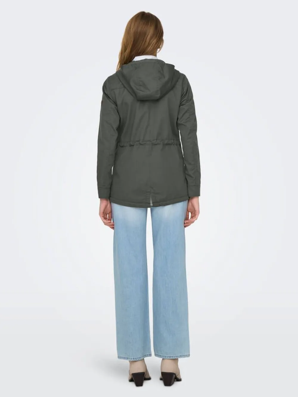 Klassinen rennon tyylikäs parkatakkimalli vyötärön kiristysnauhalla ja kiinteällä hupulla. Myös helmassa on kiris…