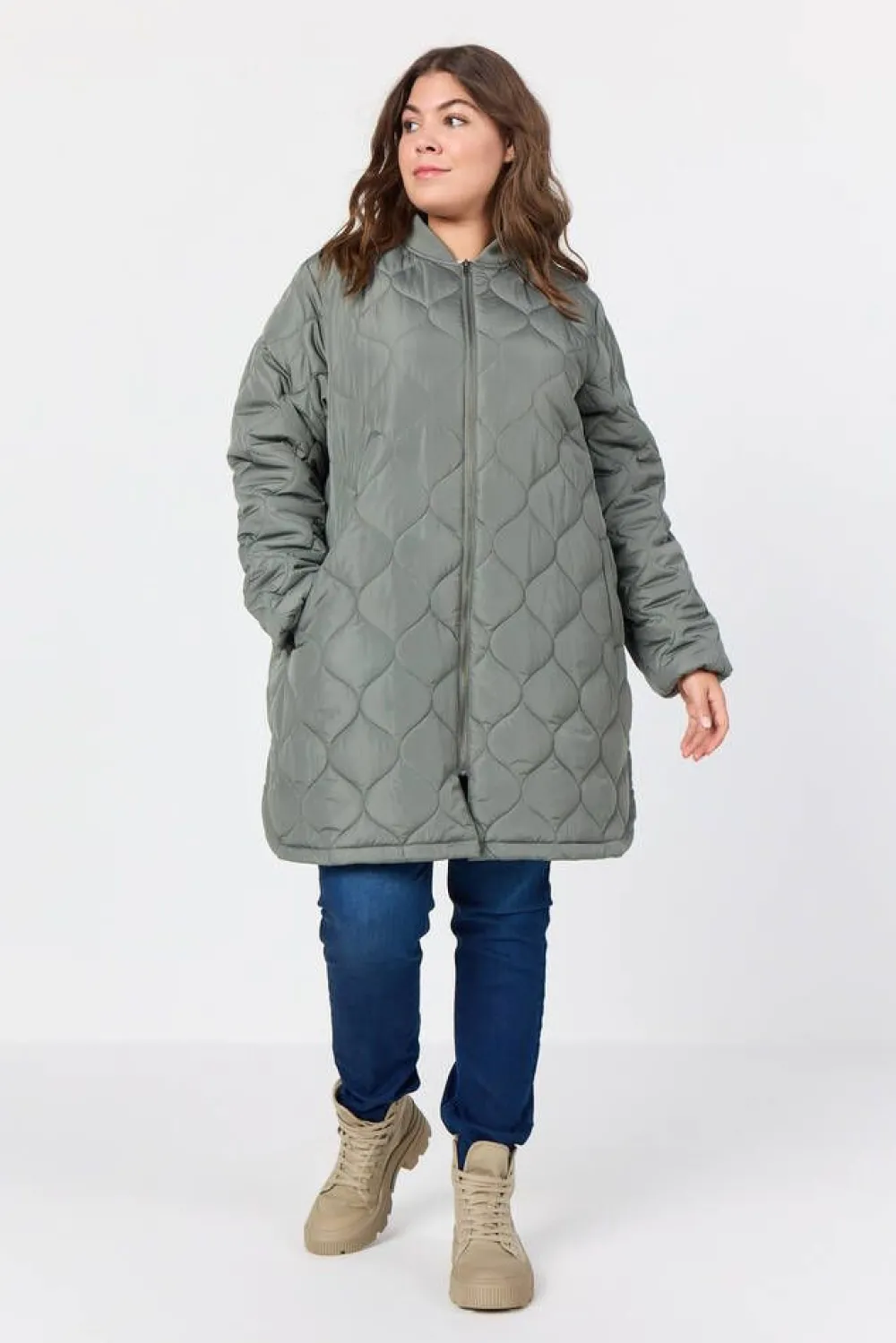Vetoketjullinen pitkä tikkitakki kätevillä etutaskuilla.Lisää tietoja