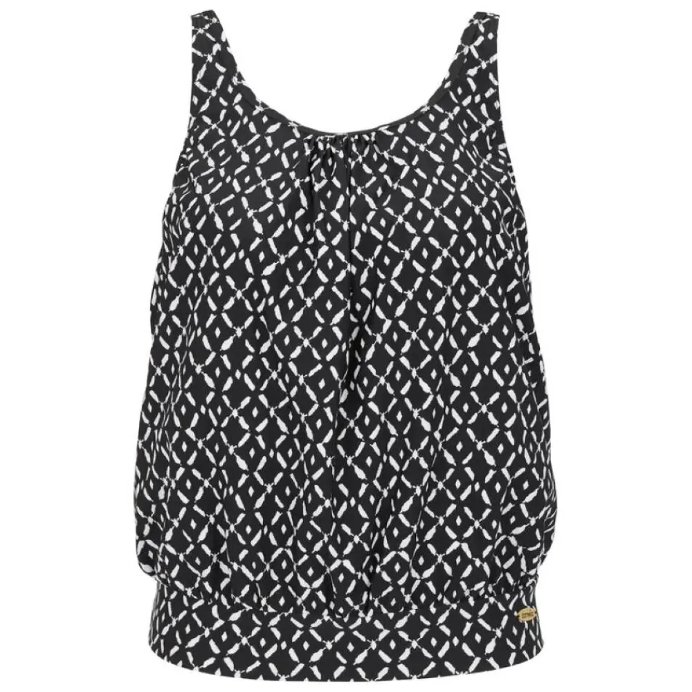 Joustava tankini toppi kaksivärisellä kuosilla ja pussimaisella helmalla. Pääntiellä hieman ryptystä.Lisää tieto…