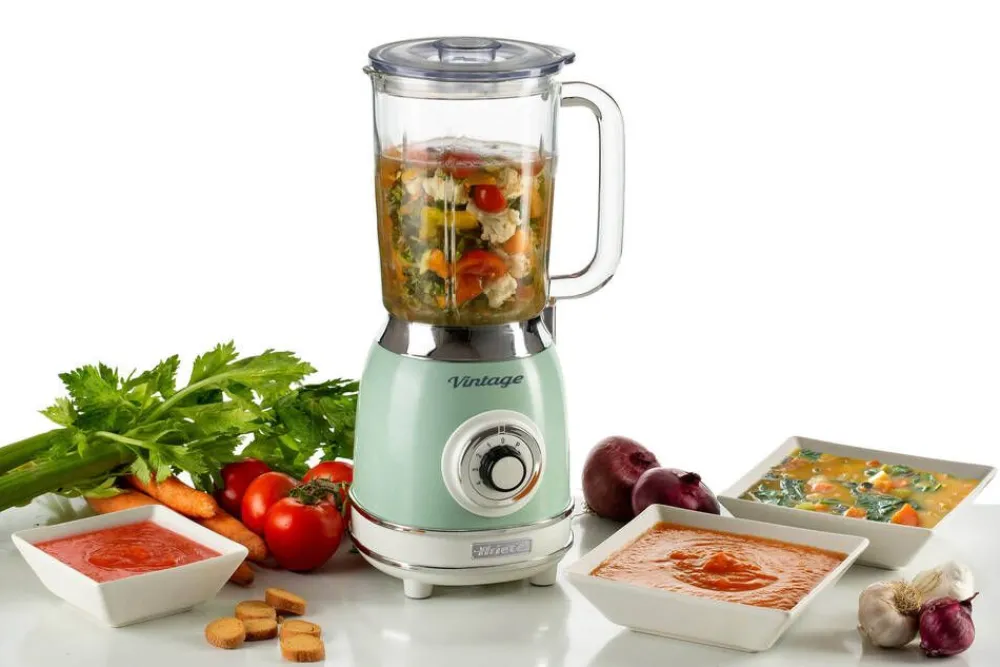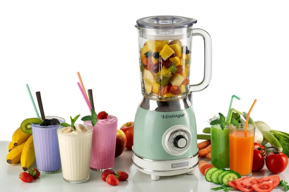 Tehosekoitin 1000 W on muotoilultaan retro. Tehosekoitin on varustettu 1,5 litran kannulla, jossa on käyttöä helpotta…
