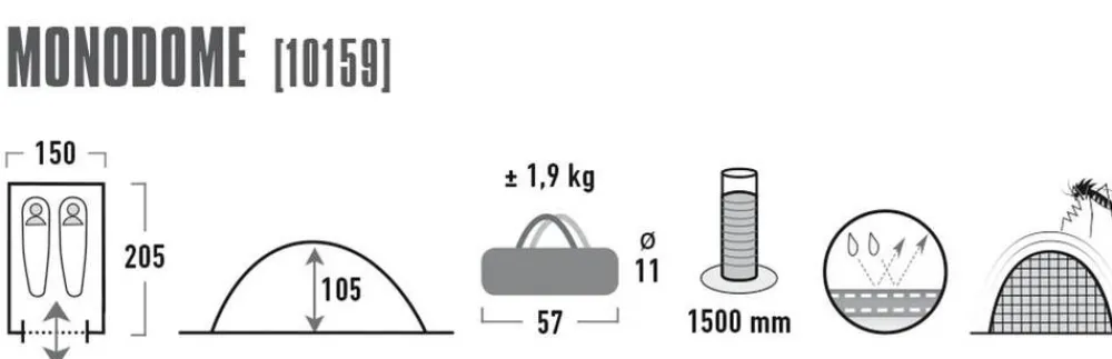 Kevyt ja helposti pystytettävä yksikattoinen kupoliteltta 2 hengelle. Ulkoteltan materiaali PU käsiteltyä 190T polye…