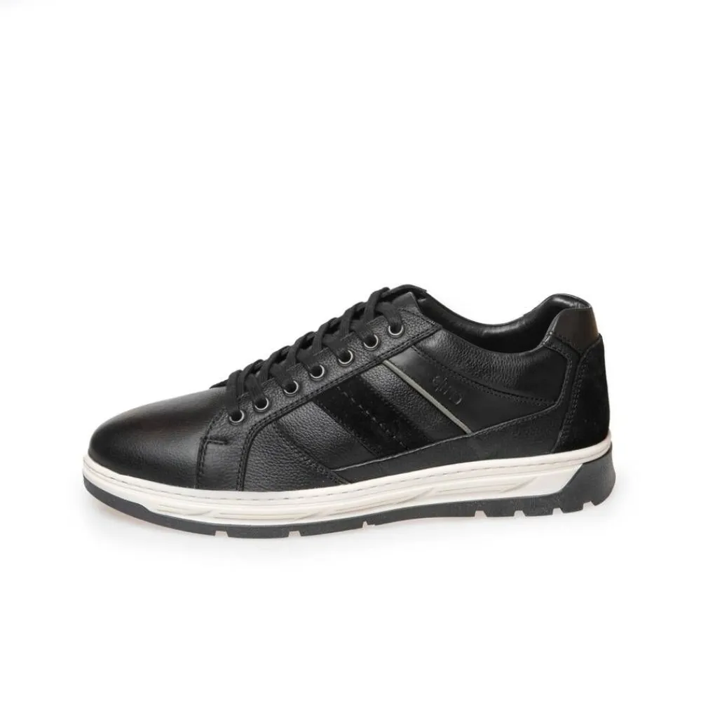 Mustat, pintanahkaiset tennarit nauhakiinnityksellä ja tukevalla ulkopohjalla.Lisää tietojaPehmustettu sisäpohjaIrro…