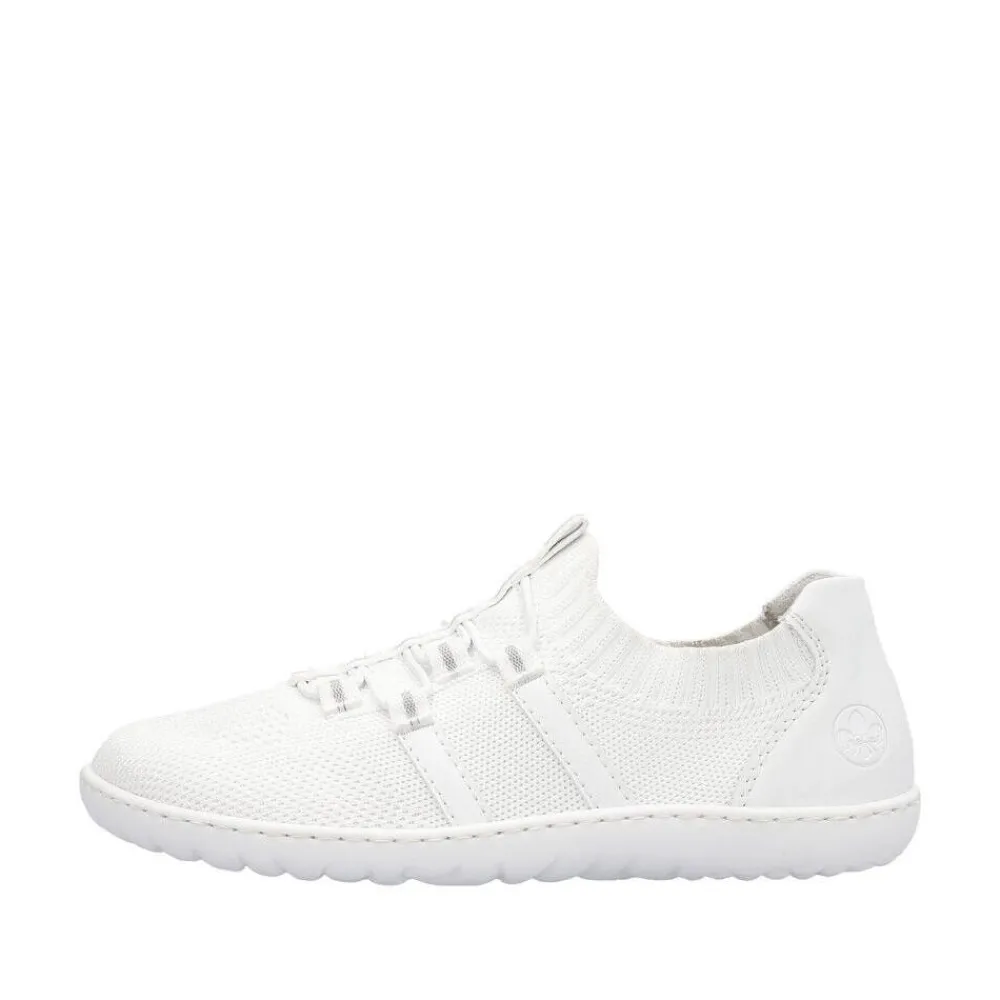 Naisten klassiset neulospintaiset ja vuorittomat kävelykengät, joissa joustonauhat ja ohuet Rieker Lite pohjat. Vegaan…