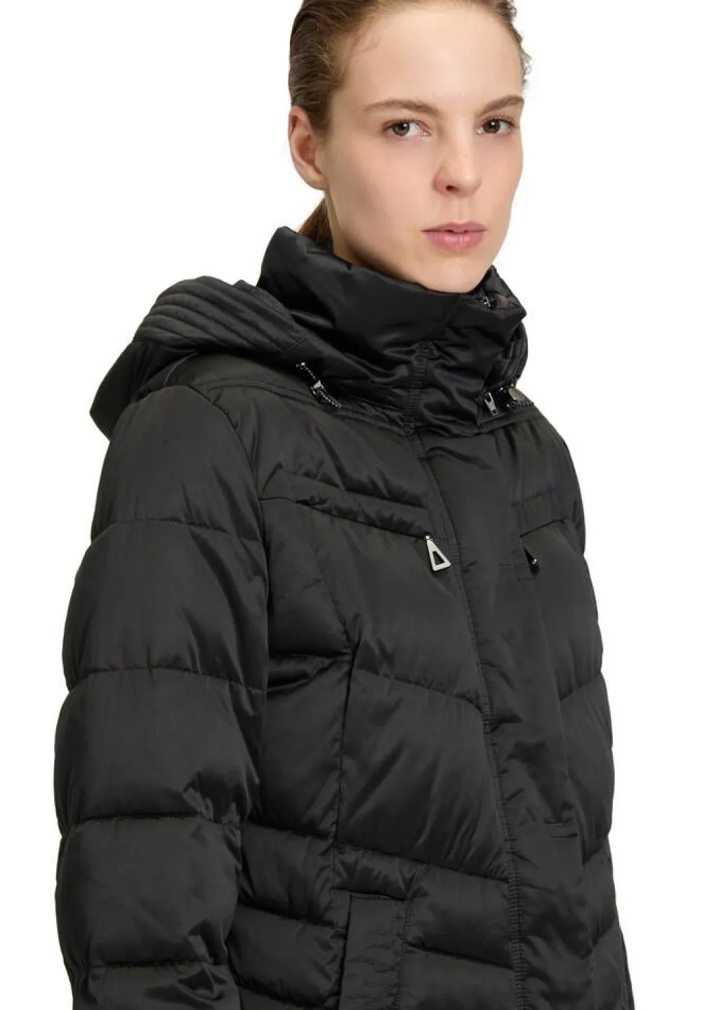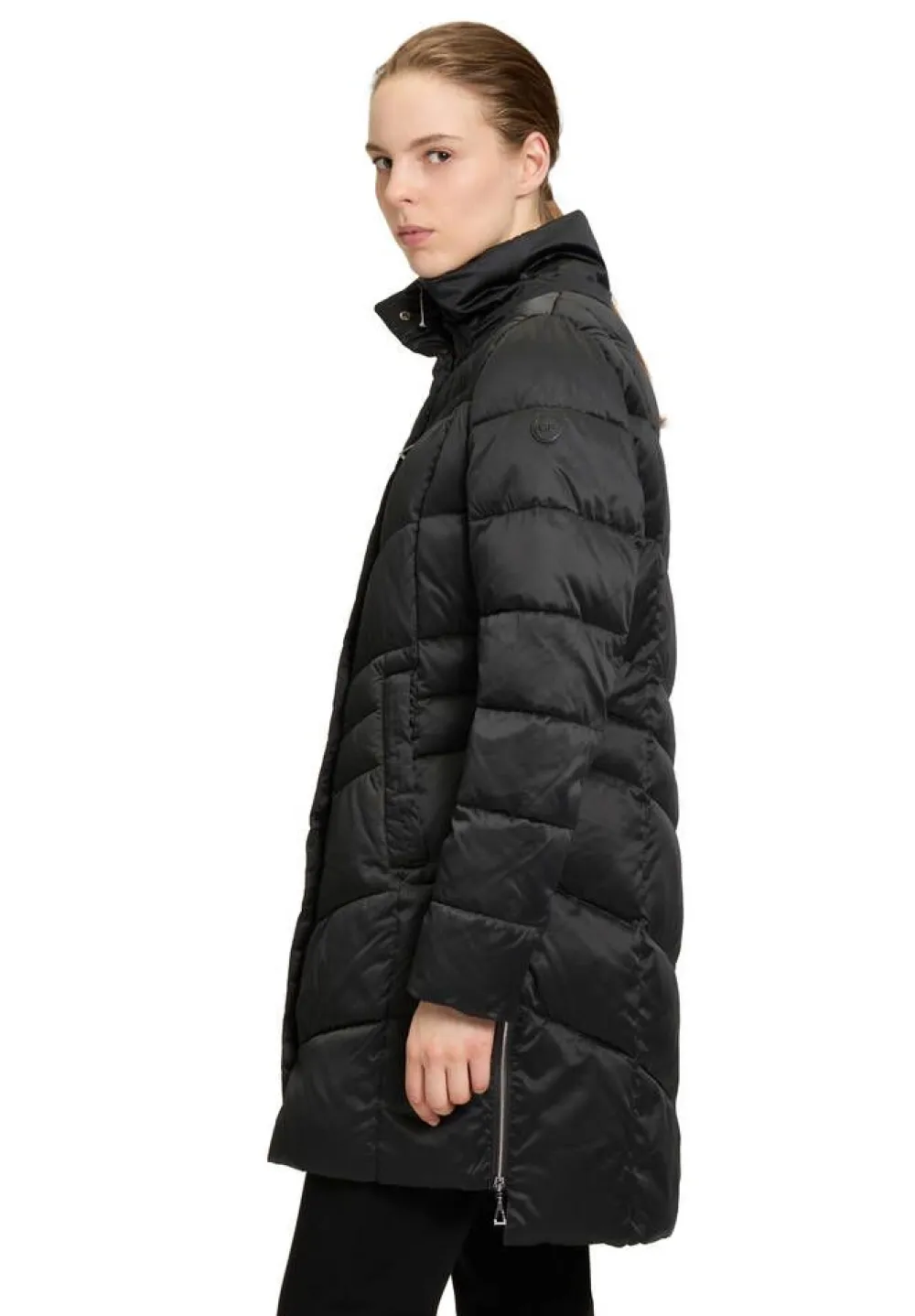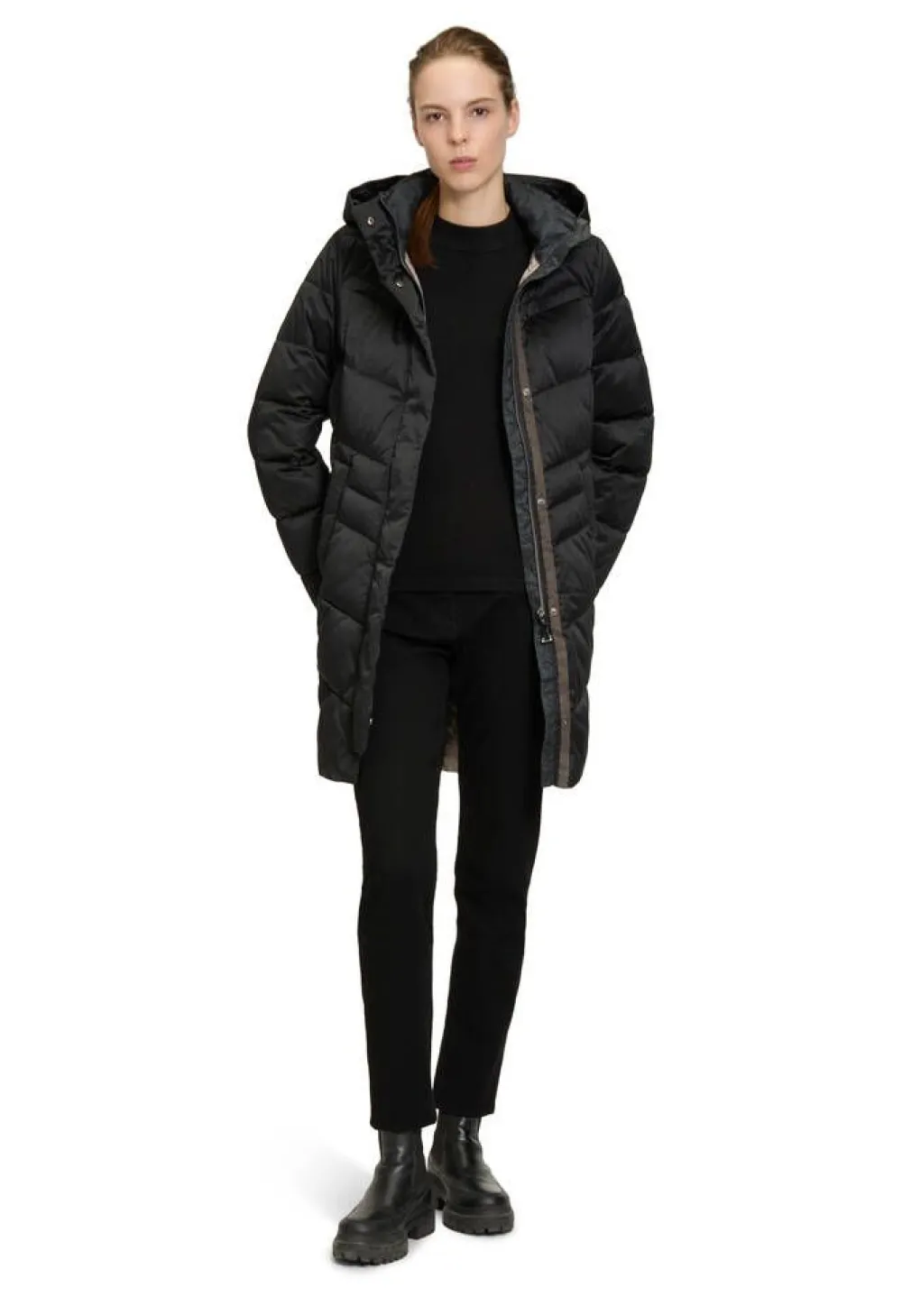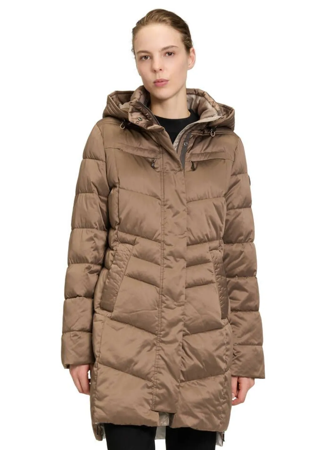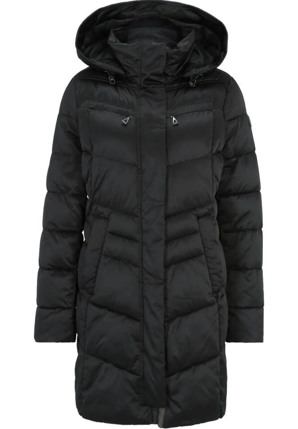 Kiiltäväpintainen toppatakki tyylikkäillä viistotikkauksilla ja irrotettavalla hupulla. Sivusaumoissa on vetoketjut,…