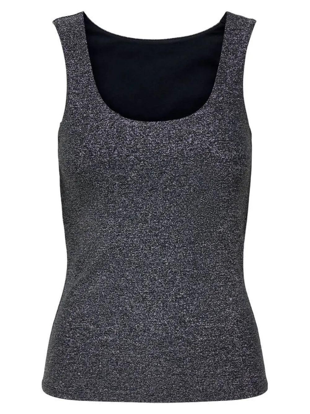 Hihaton kimalteleva toppi joustavaa materiaalia. Toppia voi käyttää kahdella eri tapaa eli molemminpäin.Lisää tiet…