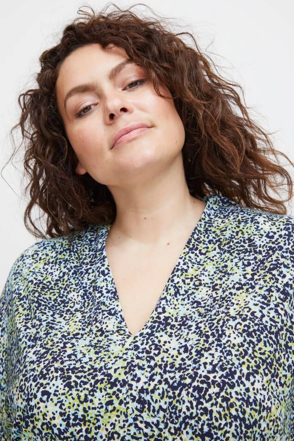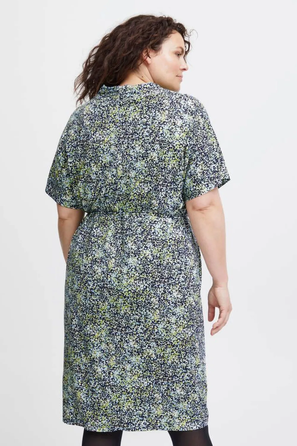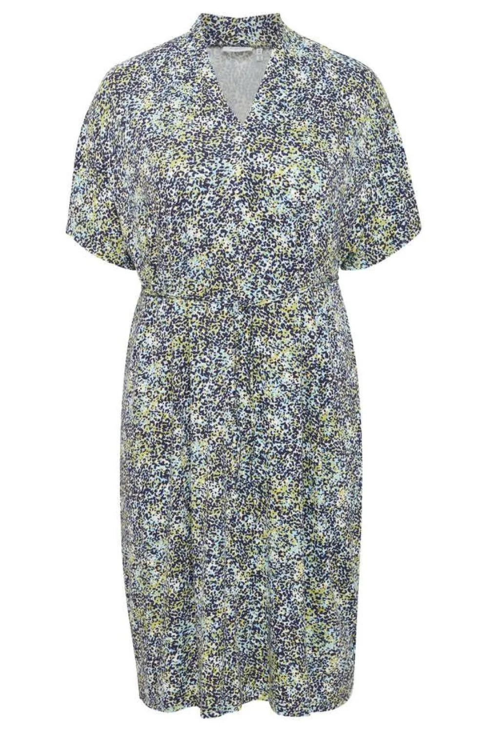 Pienitäpläinen trikoomekko V-pääntiellä ja lyhyillä hihoilla.Lisää tietojaPlus-mitoitusHoito-ohje:Vesipesu 30Mat…
