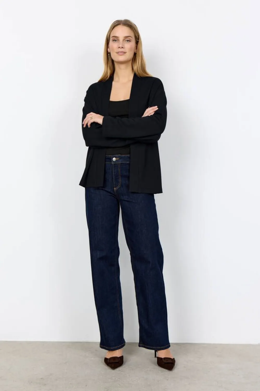 Pehmeä ja kauniisti laskeutuva trikootakki ilman kiinnitystä. Mallissa on pitkät hihat ja se sopii monenlaisiin asuko…