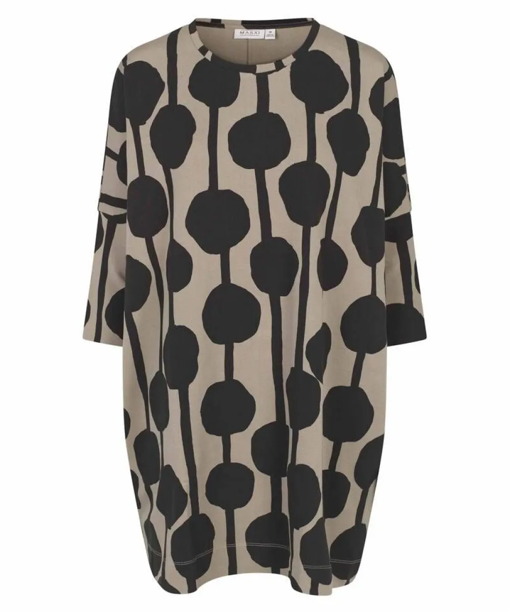 Oversize-mallinen trikootunika mustalla palloprintillä ja vajaamittaisilla 3/4-hihoilla.Lisää tietojaPunto di roma -t…