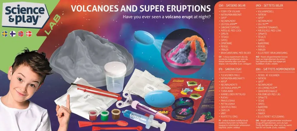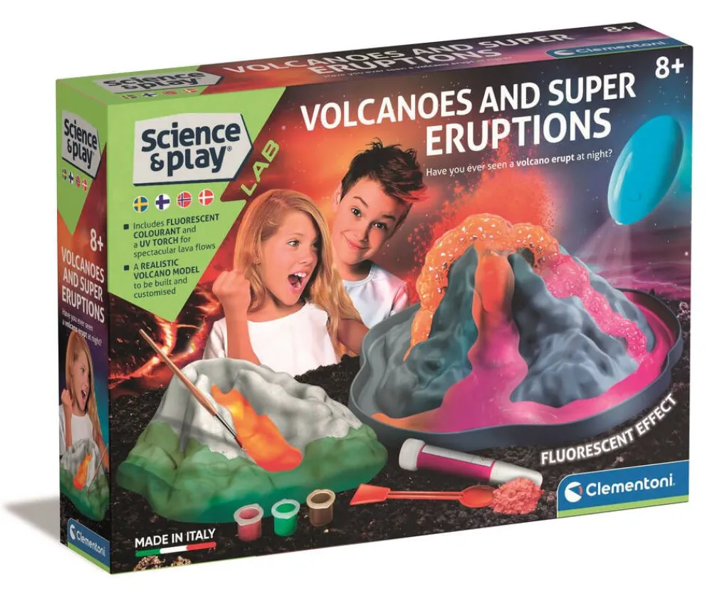 Räjähtävän jännittävä tulivuorisetti! Vala muoteista tulivuori ja koristele se maaleilla. Kaada ”laava” tuliv…